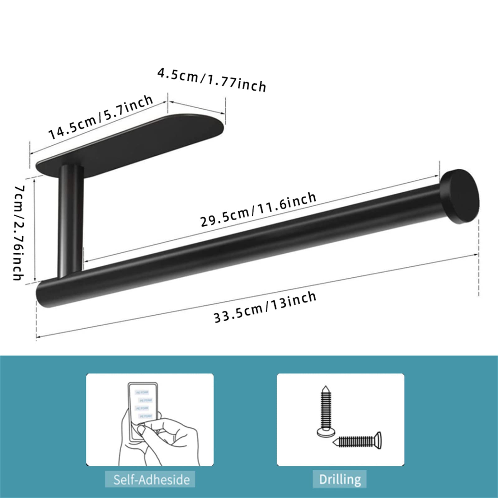 Facile à installer : nettoyez la surface et collez le ruban directement sur le mur ou sous l'armoire, attendez 24 heures avant de charger pour une forte adhérence. Économisez de l'espace : par rapport à une table, notre support de tour à papier peut vous aider à placer la tour de papier de cuisine au mur ou sous une armoire. Porte-Papier Toilette, Support De Papier Toilette Noir Au Design Syhonic Porte-serviettes En Papier Sous Armoire De 33 Cm, Noir à Support Sous Armoire Pour Rouleaux De Serviettes Porte-Serviettes En...
