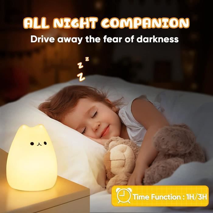 Il faut environ 3 heures pour une charge complète., 5., Lorsque le chargement est terminé, couper l'alimentation pour protéger la durée de vie de la batterie., 6., Une charge complète prend en charge l'utilisation pendant 15 heures sous le mode lumière blanche chaude et 12 heures sous mode lumière multicolore. [Garantie] Satisfaction du produit 100% GoLine garantie, remboursement sans tracas de 30 jours, assistance client 24 heures sur 24, garantie 1 an. Veilleuse LED pour enfants et chats - Tactile - Intensité variable Veilleuse chat : la sélection produits Leroy Merlin de ce samedi au meilleur prix ! Retrouvez ci-après nos 211 offres, marques, références et promotions en stock prêtes à être livrées rapidement dans nos magasins les plus proches de chez vous [Utilisation portable] La batterie intégrée 1200mAH prend en charge l'utilisation portable pendant 15 heures sous un mode de lumière blanche chaude et 12 heures sous des modes de lumière multicolores. Cadeau Homme Original Veilleuse Pour Enfants,Veilleuse Enfant LED,Cadeau Fille 6 Ans, Lampe De Chevet Tactile Rechargeable,Lampe Chat Cadeau,(Rose) - Puériculture & Eveil Bébé Veilleuse Rechargeable Appuyez sur la surface de silicone pour passer en mode de respiration à 7 couleurs, en mode veille et en mode lumière blanche chaude dans l'ordre. [Gratuit de BPA] Le joli visage de chat fait par une silicone douce sans BPA offre un bon choix de cadeau de vacances et de décoration romantique de chambre à coucher, d'étude et de salle de bébé. [Télécommande] Utilisez la télécommande pour allumer / éteindre, régler la luminosité, choisir la couleur statique ou entre 4 modes de respiration rapide / lente / lumière clignotante. Chenille Veilleuse Enfant 3D Lampe Illusion Avec Télécommande Lampe De...