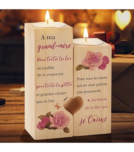 Fête des grands mères, noël, anniversaire de Mamy., ., ., Porte bougie personnalisé en bois fabrication artisanale en France. Porte Bougie Bonne fête Mamie (mod10 Format du porte bougie : 60 x 60mm - Hauteur 70mm., Bois : Frêne. Cadeau Grand Mere Bougie Mamie En Or - Cadeau Personnalisé Fête Des Grands Mères Bougie Bonne Fete Mamie Format du porte bougie : 60 x 60mm - Hauteur 70mm , Bois : Frêne Cadeau pour Mamie personnalisé avec le prénom de votre choix · Porte Bougie personnalisable livré avec son sachet cadeau organza 1 bougie chauffe plat · Format... Fabrication artisanale française Cadeau pour Mamie personnalisé avec le prénom de votre choix Livrée dans son sachet organza.