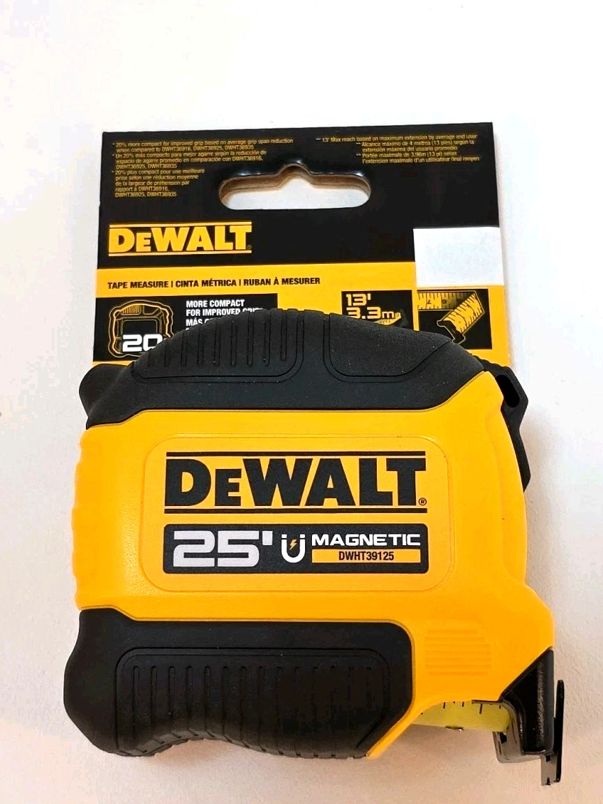Avec la capacité de survivre à des chutes jusqu'à 30,5 m**, ce mètre ruban ToughSeries™ de 10,7 m redéfinit la norme de résistance. S'accroche facilement au métal : aimant amovible simplifie le processus de mesure DEWALT Huincha De Medir Dewalt Luz Led Toughseries 8m/26 Dwht35268s Portée étendue : mesurez jusqu'à 5,2 m sans aide; Le boîtier ultra résistant maintient le ruban sécurisé et capable de résister à des chutes jusqu'à 30,5 m Le boîtier ultra résistant maintient le ruban sécurisé et capable de résister à des chutes jusqu'à 30,5 m. Metre Dewalt Braço De Elevação DeWALT DWHT83550 TOUGHSERIES Construction Jack 154kg 340lbs Tape Measure Replacement Parts Affrontez les mesures longues sans l'aide avec une portée maximale de 5,2 m. Mesurez rapidement les matériaux métalliques avec l'aimant amovible tandis que la technologie de connexion à crochet brevetée vous donne un contrôle total sur le chantier. Les mètres rubans ToughSeries™ polyvalents vous permettent de mesurer facilement sous n'importe quel angle et sont les premiers de la famille DEWALT® à avoir une impression recto-verso. Capable de résister à des chutes de 100 pi**, ce ruban à mesurer TOUGHSERIES de 35 pi redéfinit la norme de robustesse. Prenez de longues mesures sans...
