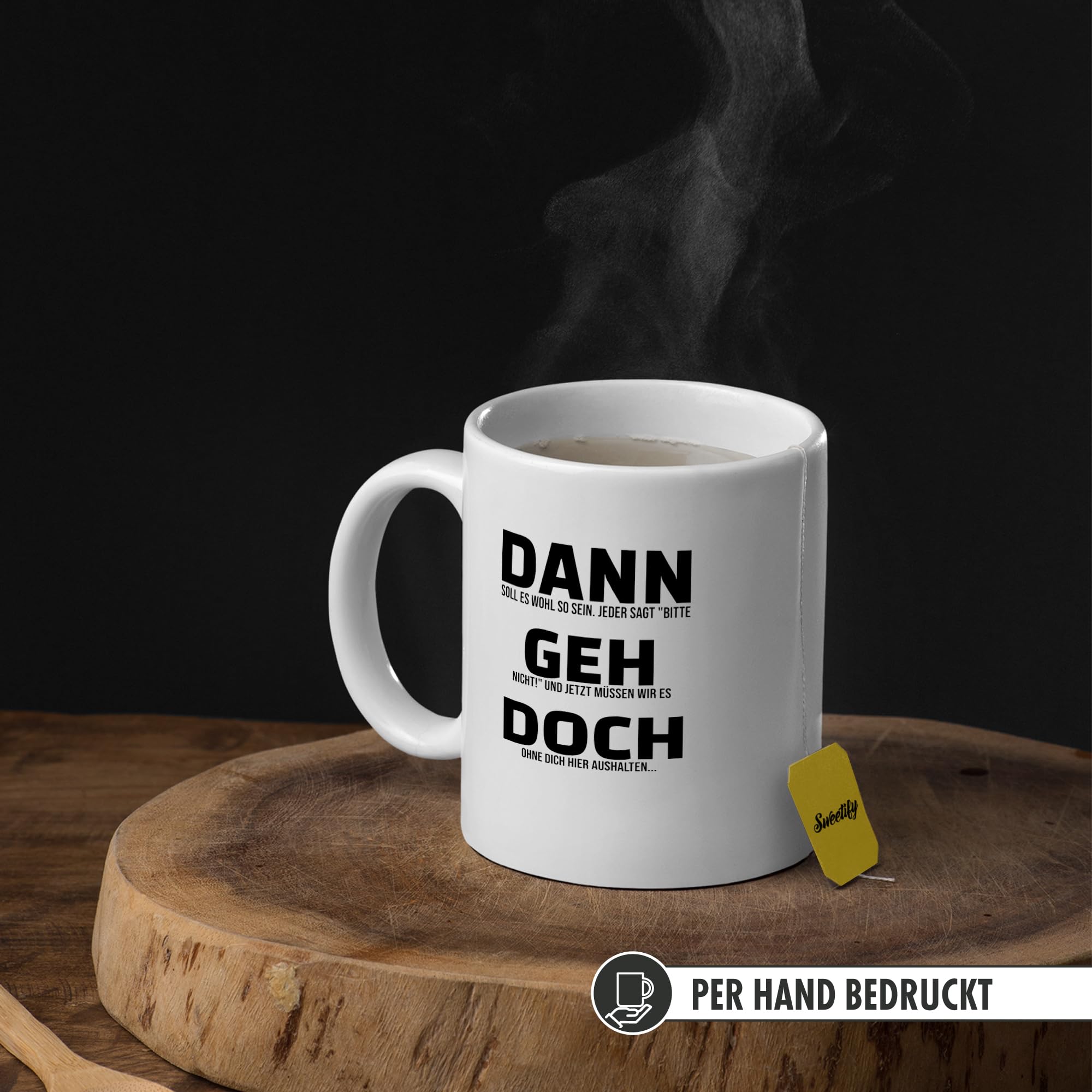 Une tasse à café imprimée Mister Merchandise est également un cadeau idéal, que ce soit pour un mariage, un anniversaire, Noël ou tout simplement comme attention pour maman, papa, grand-mère ou grand-père. Jobwechsel Tasse Geschenk Kollegin Lustig Abschiedsgeschenk Sprüche... Malgré son poids d'environ 360 g, elle tient facilement dans la main, et l'impression recto-verso assure un design attrayant de chaque côté. Cadeau D'adieu Pour Un Collègue – Mug Avec Inscription « Alors Vas-y » – Mug De Bureau Amusant Pour Collègues - France Les dimensions – 82 mm de diamètre et 95 mm de hauteur – rendent la tasse maniable et agréable à utiliser. Les tasses Mister Merchandise convainquent par leur qualité et leur durabilité impressionnantes. Avec une capacité de 330 ml, ils offrent la taille parfaite pour votre café ou thé préféré. Grâce à leur haute résistance au lave-vaisselle, elles résistent facilement à plus de 2 000 lavages (testés selon la norme BS EN 12875-4), sans perte de qualité de pression. Notre grande tasse classique est idéale pour le café du matin, la pause thé ou une soirée confortable. Idée cadeau idéale - Les tasses à café imprimées sont d'excellents cadeaux pour toutes les occasions : mariage, anniversaire, Noël. La durabilité des tasses à café est particulièrement remarquable : elles passent non seulement au lave-vaisselle, mais aussi au micro-ondes. Dann Geh Doch Sprüche Abschiedsgeschenk Tasse Cadeau cool : surprenez vos amis, votre famille ou vos collègues avec une tasse amusante. Une idée cadeau personnelle pour maman, papa, grand-mère, grand-père ou amis. Karte Dann geh doch erscheint nur auf den ersten Blick unhöflich... Qualité durable, sans substances nocives et convient également pour une utilisation en restauration – pour un moment de plaisir parfait à la maison ou au bureau. Un cadeau personnel et amusant qui fera sourire vos amis et vos proches. Un cadeau personnel qui apporte de la joie et se souvient durablement. Parfait également comme surprise pour la fête des mères ou la fête des pères.