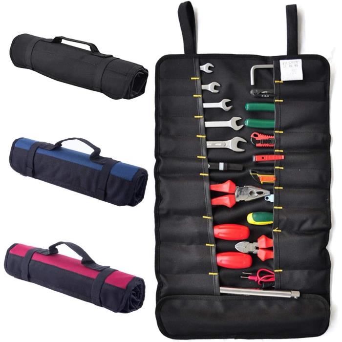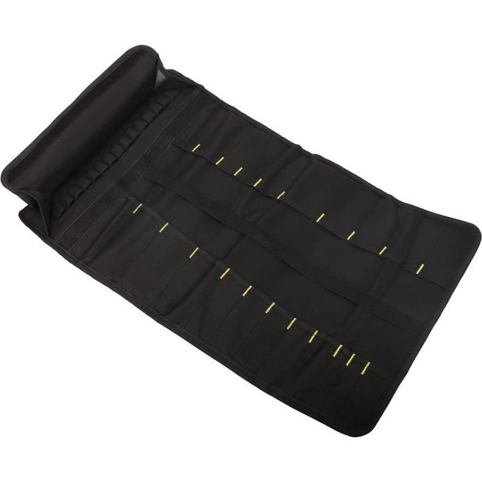 1., 20 poches intérieures avec 15 poches supplémentaires, bon pour organiser et protéger les petits outils ou accessoires tels que pinces, tournevis, jauges de pneu, mini lampes de poche et autres petits outils., 1., 20 poches intérieures avec 15 compartiments supplémentaires, bon pour organiser et protéger les petits outils ou accessoires tels que pinces, pilotes, manomètres, mini lampes de poche et autres petits outils. Il est facile à enrouler et dispose d'une poignée sur le dessus pour un transport facile., 4., Dimensions déplié (L x l) : 57,9 x 34 cm., 5., Remarque : outils non inclus. Homdat Sac à outils Enroulable, Trousse Outils 900D Oxford Enroulable Tournevis Les Poches Plus Petite Pinces Pochettes/vide Outils 1.Taille du produit : lorsqu'il est déroulé, mesure 58,5 x 35,5 cm ; lorsqu'il est vide et roulé, mesure 35,5 cm de longueur, 8,5 cm de diamètre selon le modèle.2.Capacité : un côté dispose de 10 poches de 10,5 cm de profondeur, la plus large : 6,5 cm, la plus étroite : 3 cm ; l'autre dispose de 12 poches différentes, 8-12 cm de hauteur, 2-6 cm de largeur. SUC-Rouleau à outils Sac à Outils Enroulable, Sac à Outils en Tissu... Design multi-poches] Il est pratique pour accéder aux outils, organiser, supporter une charge lourde, et être durable, améliore efficacement l'efficacité du travail, protège les outils, et est facile à transporter