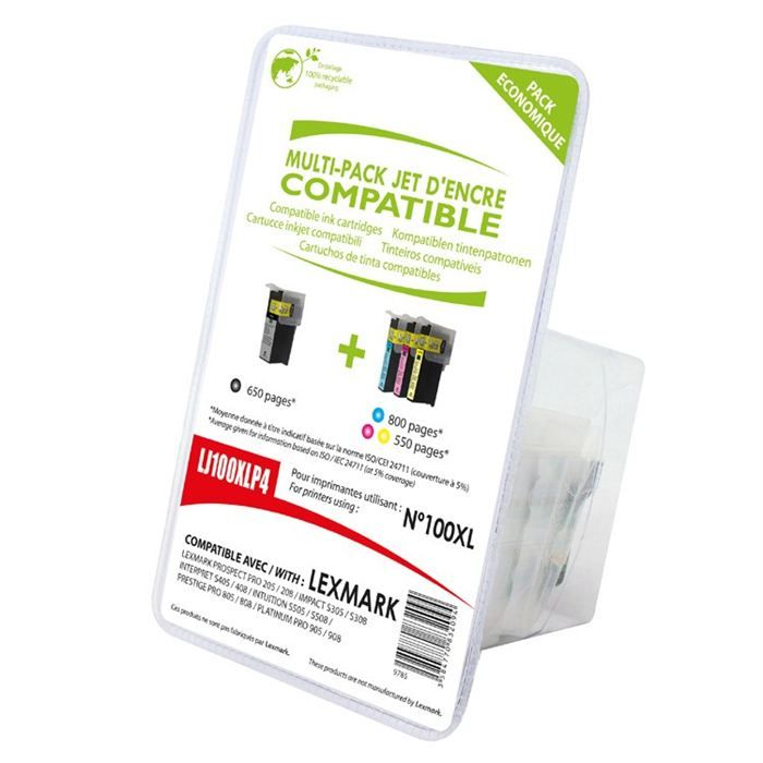 Pack 4 cartouches d'encre compatibles N° 100 / Grande capacité / Noir et Couleur pour imprimante : LEXMARK Genesis S815 Impact S301 S305 Interact S605 Interpret S405 Intuition S500 S505 PINNACLE Pro901 Platinium Pro900 Pro905 Prestige Pro805 Prevail Pro705 Pro 200 205 700 705 805 901 905 Prospect Pro200 Pro205 S605 S 301 305 400 405 505 600 605, Grande Capacité , Haute Qualité N°100 XL / Cartouche Noir Cyan Magenta Yellow Lexmark Prevail Pro705 : meilleur prix - Les Numériques Cartouche Cw 100 Pack 4 Cartouches D'encre N° 100 XL Pour Imprimante LEXMARK Prestige Pro 805 Prevail Pro705 Pro 200 205 700 705 805 901 905 - Plein D'encre Encre Lexmark Pour les imprimantes Photosmart: Wireless, Plus, Premium, E station, Deskjet, Officejet. Pack 4 Cartouches de gaz Camping 227gr Butane Réchauds Désherbeurs... Lexmark 100 XL (14N0850B) C/M/Y Bläckpatroner - Original