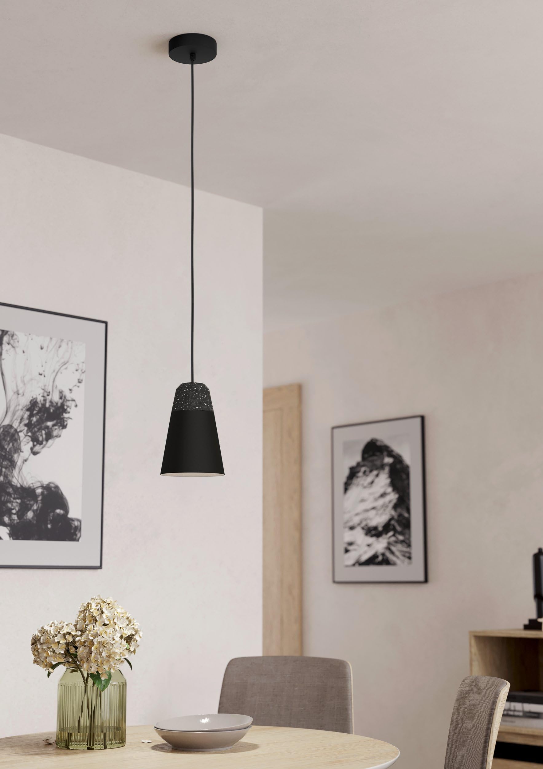 Suspension Pas Cher Suspension Luminaire Canterras, Lustre Chambre, Plafonnier Salon Ou Luminaire Sur Pied Global et local Environ 70 sociétés EGLO s'occupent des ventes, du service et, dans certains cas, du marketing régional au niveau local dans plus de 50 pays du monde. La gamme actuelle de produits comprend plus de 4 000 articles. Profitez de cette suspension de EGLO pour amener la lumière là où vous le souhaitez, la faire briller exactement comme vous le désirez, et donner à votre intérieur une signature lumineuse incomparable Suspension luminaire Lobatia, lustre chambre à 4 flammes, plafonnier... L'ampoule n'est pas incluse dans la livraison Lustre plafonnier EGLO MASERLO douille : E27, L : 78 cm pour salon, cuisine, chambre... - Décoration Dimensions : hauteur : 110 cm, diamètre : 15 cm La lampe de plafond au design attrayant garantit un éclairage optimal dans n'importe quelle pièce - que ce soit dans votre salon ou dans votre salle à manger Le luminaire suspension en métal noir avec son abat-jour doté d’un élément en terrazzo gris-blanc, s’inscrit idéalement dans la tendance moderne Le luminaire suspension en métal noir avec ses quatre abat-jour dotés des éléments en terrazzo gris-blanc, sinscrit idéalement dans la tendance moderne La lampe de plafond au design attrayant garantit un éclairage optimal dans nimporte quelle pièce - que ce soit dans votre salon ou dans votre salle à manger Lampoule nest pas incluse dans la livraison Convient à toute ampoule équipée dun culot E27 pour une puissance maximale par douille de 40 W; Puissance réglable en fonction de lampoule utilisée Dimensions : hauteur : 110 cm, longueur : 97,5 cm, largeur : 15 cm Malgré une internationalisation et une mondialisation progressives, nous sommes et restons une entreprise familiale aux racines tyroliennes.