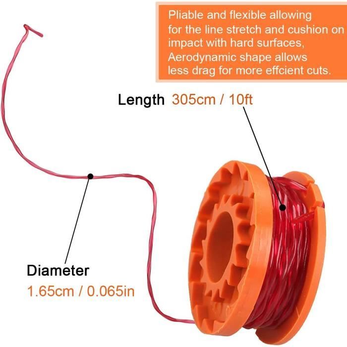 - **Haute compatibilité** : cette bobine de débroussailleuse est conçue pour être compatible avec les modèles Worx populaires tels que WG180, WG163 et WG175, assurant un ajustement parfait et une performance optimale pour vos tâches de tonte de gazon. - **Matériaux résistants** : fabriqué à partir de matériaux de haute qualité, le fil de débroussailleuse dispose d'une épaisseur robuste de Ø1,65 mm qui améliore la durabilité, vous permettant de lutter contre la prolifération difficile et de maintenir une pelouse vierge sans remplacement fréquent. - **Longueur généreuse** : chaque bobine offre une généreuse ligne de débroussailleuse de 3 mètres, offrant une longueur suffisante pour plusieurs sessions de coupe, ce qui en fait un choix efficace pour les amateurs d'entretien de pelouse qui cherchent à garder leurs jardins propres. Fil Nylon Worx Bobines Fil Coupe-bordure Yweller - Lot De 8 Efficace]: Le fil de coupe de haute qualité de 3 m/1,65 mm et le couvercle de bobine peuvent facilement couper l'herbe et les mauvaises herbes. La résistance... Bobine Fil Debroussailleuse Castorama Fil Debroussailleuse Lot De 6 Fils De Coupe Pour Tous Les Coupe Bordures Worx 20 V Et P 783851 Fil Pour Coupe Bordure Worx - **Garantie de satisfaction du client** : nous sommes fiers de la qualité de nos produits.