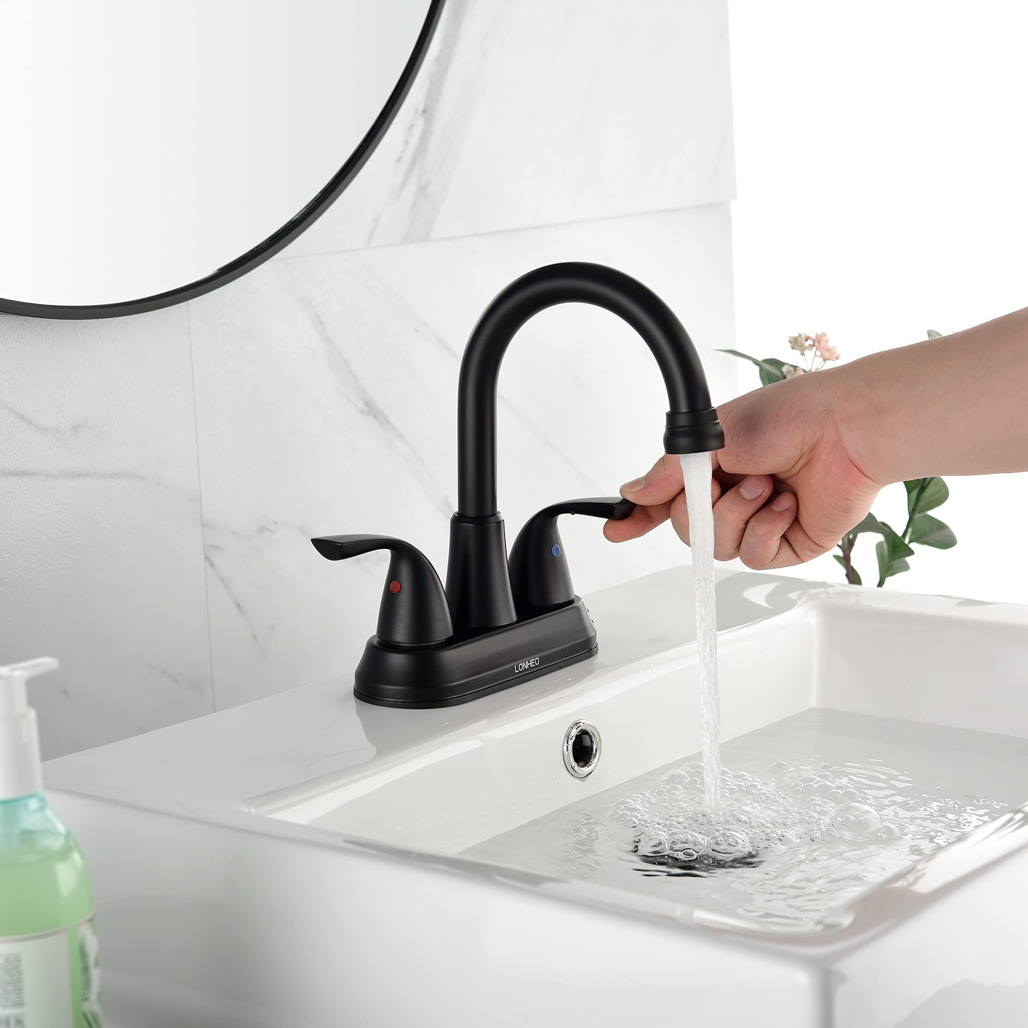 Robinet de salle de bain central noir mat de 4 pouces (102 mm), monté sur plate-forme à 3 trous Matériel: Laiton Couleur: Noir Mat Longueur du tuyau : 600 mm. Portée du bec : 12,4 cm, hauteur du bec : 13,7 cm, hauteur totale : 21,3 cm Robinet Lavabo Mural , Mitigeur Robinet Salle de Bains en Laiton, Noir La finition noire mate offre un look métallique légèrement mat givré, design rétro classique tendance ; sans traces de doigts, résiste à la corrosion, le style noir s'accorde bien avec la salle de bain Rotation à 360° - Bec rotatif à 360 degrés, plus de dégagement et un meilleur accès à l'évier, offrant plus d'espace pour nettoyer votre lavabo de chaque coin. Robinet Salle De Bain Brico Dépôt Robinet De Salle De Bain Noir Mat Avec Bec Pivotant à 360 Mitigeur Salle De Bain Brico Dépôt Hauteur du bec : 165 mm., Hauteur totale : 225 mm. La finition noire mate offre un look métallique légèrement mat givré, design rétro classique tendance ; sans traces de doigts, résiste à la corrosion, le style noir s'accorde bien avec la salle de bain Trous de montage: 3 trous Caractéristique: Bec pivotant à 360 °, conception de cascade Contenu de l'emballage : Robinet de salle de bain 1 x 4 po 2 conduites d'alimentation en eau UPC 23,6 (connecteur standard américain 3/8) 1 x drain pop-up (trop-plein, plastique) Description · Style: Moderne · Finition: Noir mat · Type de robinet: Robinet vasque/lavabo · Installation: Mono-trou · Débit: 5 L/minute · Diamètre d'écrou: 32 mm...