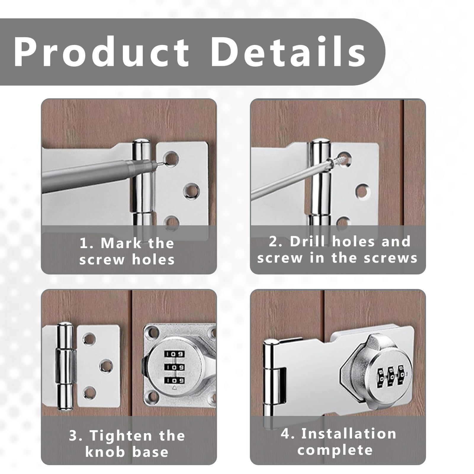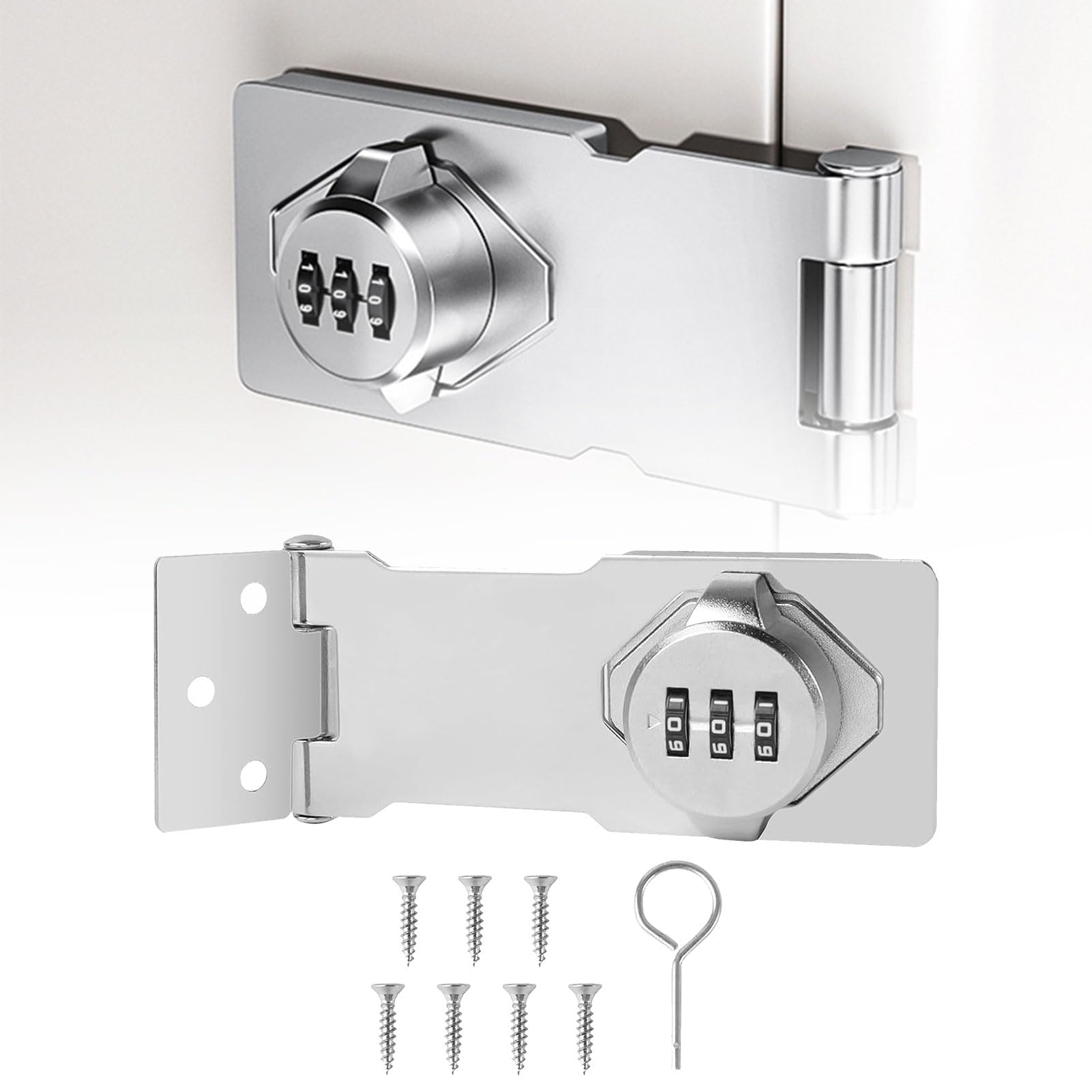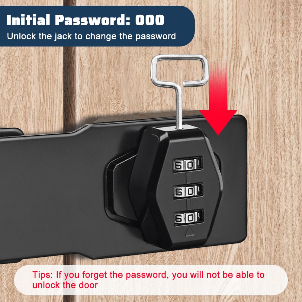 Moraillons de Verrouillage,Serrure d'armoire,Loquet de Verrouillage à Combinaison,Cadenas à combinaison à 3 chiffres,Serrure à Combinaison pour Armoire pour Caisse en Bois Tiroirs Armoire Bathroom 【Mot de passe à 3 chiffres】 Le verrou d'armoire de ce produit est équipé d'un mot de passe numérique, qui peut être facilement déverrouillé avec le mot de passe, éliminant ainsi le besoin d'utiliser une clé ou un cadenas. Moraillons de Verrouillage, Imperméable Verrou à Combinaison 【Verrouillage de haute qualité】le moraillon verrouillable est fabriqué en acier massif et recouvert de plusieurs couches de galvanoplastie, ce qui le rend solide, résistant à l'usure et durable. Moraillon Avec Serrure Verrouillage à Cadenas à à 5 Chiffres Serrure à Combinaison De Porte De Moraillon De Serrure à Clé Le mot de passe à 3 chiffres comporte 999 combinaisons possibles qui protègent et empêchent votre vie privée, améliorant considérablement votre sécurité et votre confidentialité sans vous soucier de perdre vos clés. Installation rapide : la taille de ce loquet est de 65 x 29 mm, sélectionnez la couleur selon vos besoins et fixez-la avec des vis, puis soulevez simplement le... 【Polyvalence】le manche verrouillable est adapté pour une utilisation en intérieur et en extérieur, parfait pour les fenêtres, les placards, les portes de hangar, les patios, les portes pour animaux de compagnie, les boîtes aux lettres, les tiroirs et autres meubles et plus encore. 【Facile à installer】 Le verrou d'armoire convient à une installation à gauche et à droite et peut être installé à un angle de 90 ° ou 180 °. Le mot de passe par défaut est 000 avec jusqu'à 1 000 combinaisons possibles que vous pouvez modifier à tout moment.