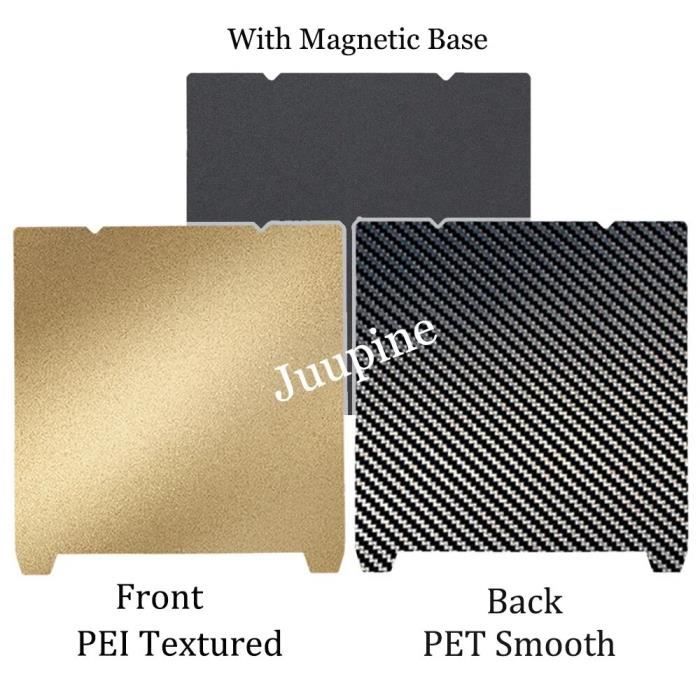 Description du produit Plaque de Construction Flexible PEI Lit D' Double Face en Fibre de Carbone PET Lisse 256x268mm pour Kobra 3 avec Plate-forme D' 3D Texturée pour Imprimante Lit D' pour Kobra 3 [Conception polyvalente double face] Convient aux imprimantes 3D combo 3 et 3, cette plaque de construction de 256 x 268 mm offre 2 effets d' pour répondre à divers besoins d'. Adhérence améliorée du modèle] La plaque de construction empêche la déformation lors de l' et assure une forte adhérence au modèle. assurez-vous que le lit d... adapté à divers environnements et matériaux d', s'adaptant aux différents besoins. Il adhère bien aux matériaux tels que le PLA et le TETG et résiste à une température de 120 ℃ 5., Facile à utiliser et à retirer : ce lit d' double face est flexible et peut rapidement démonter les modèles sans outils. Modèles flexibles et faciles à démonter sans outils. démontage rapide et récupération facile de la planéité après utilisation en pliant simplement la planche., 1., Forte adhérence : la plaque de construction améliore l'adhérence au modèle et empêche la déformation pendant l' ; Avant de retirer le modèle, veuillez vous assurer que le lit d' a été suffisamment refroidi en dessous de 30 ℃ pour éviter d'endommager le revêtement 2., Modèle compatible : la plaque de construction double face a une taille de 256 x 268 mm et convient aux imprimantes 3D Kobra 3 et Kobra 3 Combo ; Fournit 2 effets d' pour répondre à davantage de besoins d' 3., PEI : La de pulvérisation de poudre PEI a une texture givrée, résistante à l'usure et aux rayures, et peut bien adhérer à divers matériaux d' tels que le PLA, l'ABS, le TPU, le TETG, le nylon, avec une résistance à la température allant jusqu'à 260 ℃ 4., Texture PET : le bas du modèle imprimé sur la PET a une texture en fibre de carbone, facile à coller au modèle et facile à entretenir. [Matériaux durables et polyvalents] La de pulvérisation de poudre Pei avec texture givrée est résistante à l'usure et aux rayures, adhérant bien aux matériaux comme le PLA, l'ABS, le TPU et plus avec une résistance à la température jusqu'à 260 °C. [Entretien facile] Le bas du modèle imprimé sur la de l'animal a une texture en fibre de carbone pour un collage et un entretien faciles. [Haute planéité pour la précision] La de construction plate assure une grande planéité au bas de l', adhérant fermement au modèle à la plate-forme d'. IdeaFormer Plaque d'impression texturée lisse Kobra 3/Kobra 3 V3 PEI 256 x 268 mm, Cobra 3 PEI Build Plate Spring Steel pour imprimante 3D Anycubic Adhérence Lit Chauffant Plaque Construction Double Face PET/PEO Pour Anycubic Kobra 3 - 256x268mm - Adhérence Et Démoulage Facile Plateau Pet Peo Kobra 3 en fibre de carbone pet avec adhésion facile pour pla et tetg à 120°c.