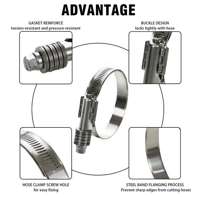 Colliers de serrage en acier inoxydable : nos colliers de serrage sont fabriqués en acier inoxydable A2 avec une surface lisse, qui sont durables, robustes et inoxydables. Empêche efficacement les pertes : notre collier de serrage réglable s'adapte aux tuyaux de diamètre de 91 à 114 mm et est conçu pour fermer le tuyau en toute sécurité avec un clip à l'arrière. Installation facile : desserrez les vis du collier de serrage avec un tournevis, passez le tube à travers le collier de serrage, ajustez les colliers à vis à la bonne position et à la bonne taille en fonction du diamètre du tuyau et serrez les vis pour terminer l'installation. Litensh Lot de 6 colliers de serrage réglables en acier inoxydable 304 - 91-114 mm - Grands colliers de serrage réglables - Colliers de serrage pour piscine, voiture, étang, jardin En acier inoxydable 304 (antirouille), diamètre réglable 91-114mm. Serrage puissant avec vis à plat - idéal pour fixer tuyaux de piscine, filtres, robinets... Collier De Serrage Inox Papillon Collier De Serrage Réglable Pour Tuyaux Collier De Serrage En Inox Nombreuses utilisations : le collier de serrage en acier inoxydable est utilisé dans une variété d'applications dans la construction mécanique, l'industrie du meuble, l'industrie automobile.