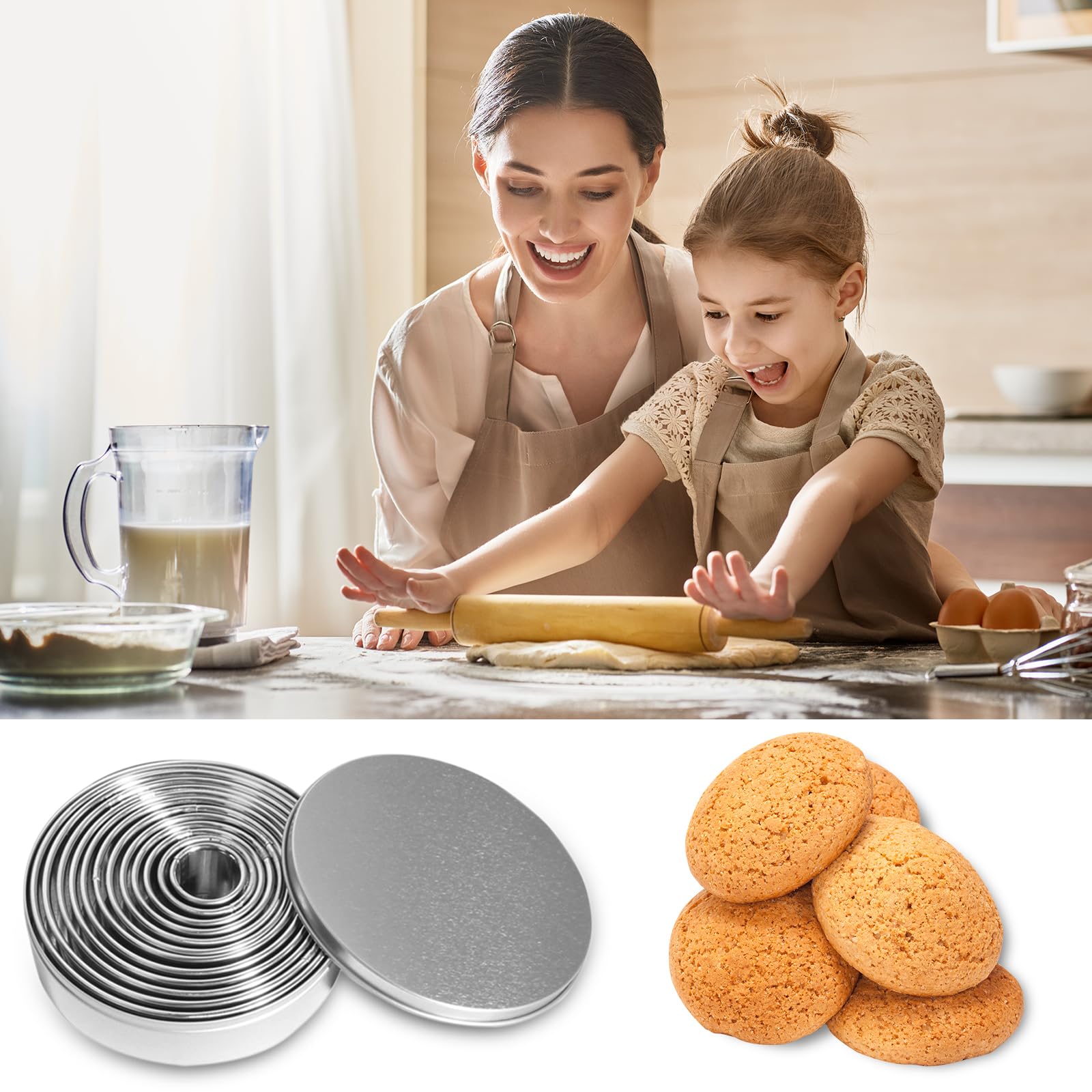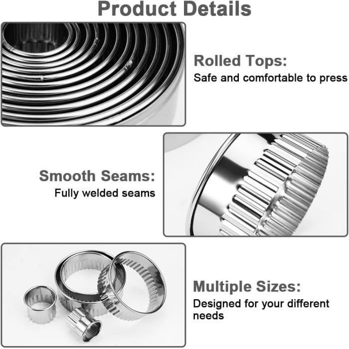 emporte-pièce rond Utilisations Multiples]Ce cercle patisserie rond pour cuisine adapte aux biscuits, gâteaux, pâtes, mousses, muffins, fromage, glaçage, beignets, etc. Vous pouvez vous adonner au plaisir de faire des desserts [Plusieurs Tailles] 12 tailles différentes d'emporte piece rond, de 2,5 cm à 11,3 cm, plus une boîte de rangement délicate en fer, à l'abri de la poussière, facile à... Cookie Cutter VEPEPE 12 PCS Rond Avec Délicate Boîte Et 3 Grattoir à Pâte En Emporte Piece Patisserie Bleu sellerie épicerie emporte piece 13 cm Stock Inférieur Relativement