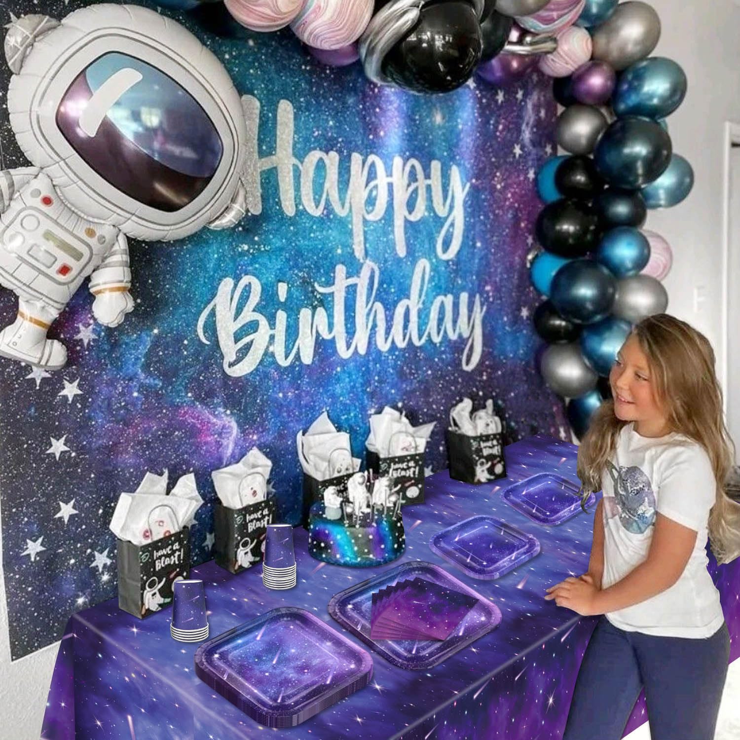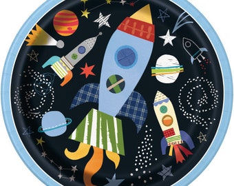 Assiette Jetable Bleu Marine PARTY GO 50 Assiettes De Fête Colorées, 23cm Pour Garçons Et Filles Décoration D'anniversaire Vaisselle En Papier Assiettes Carton Dorées
