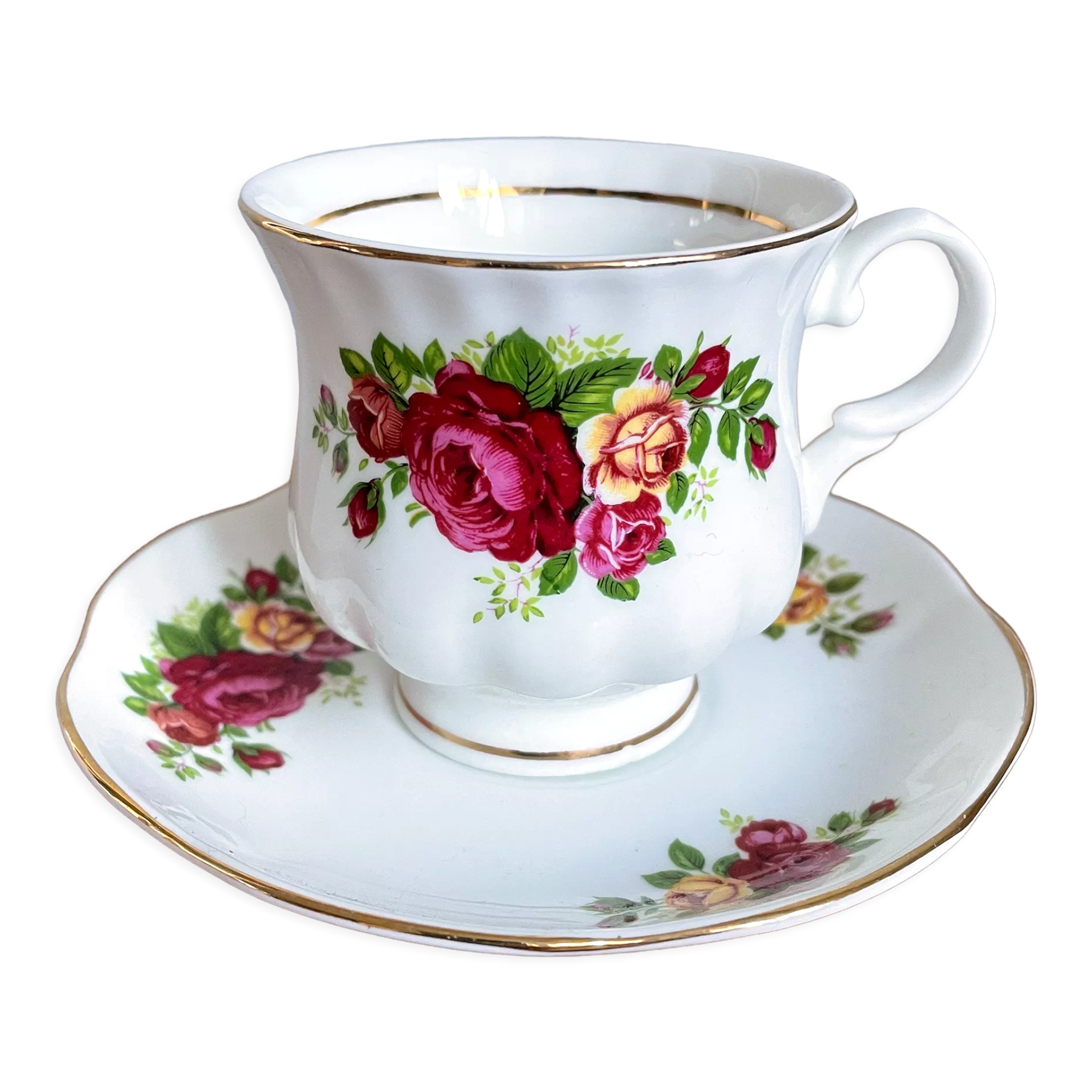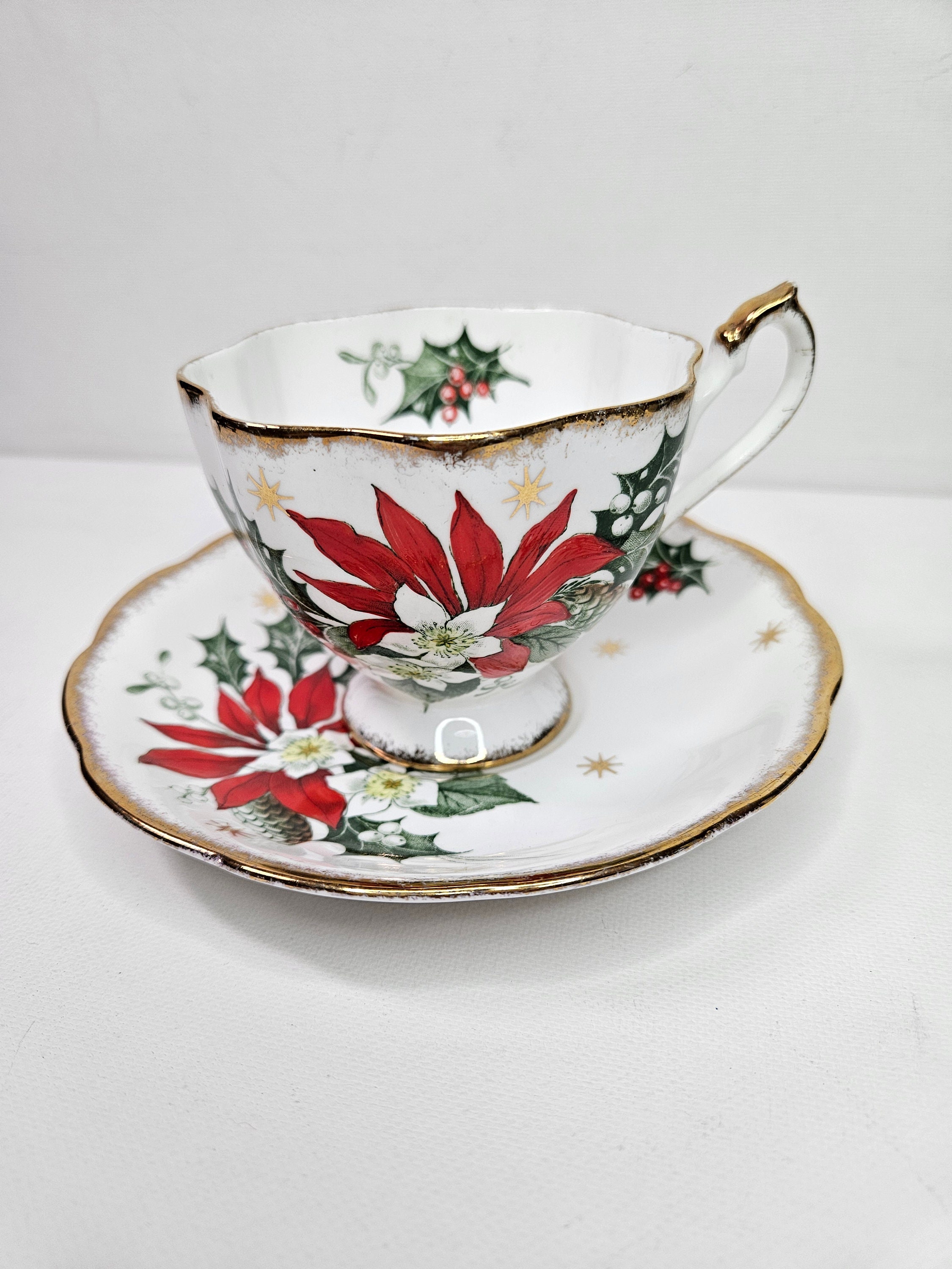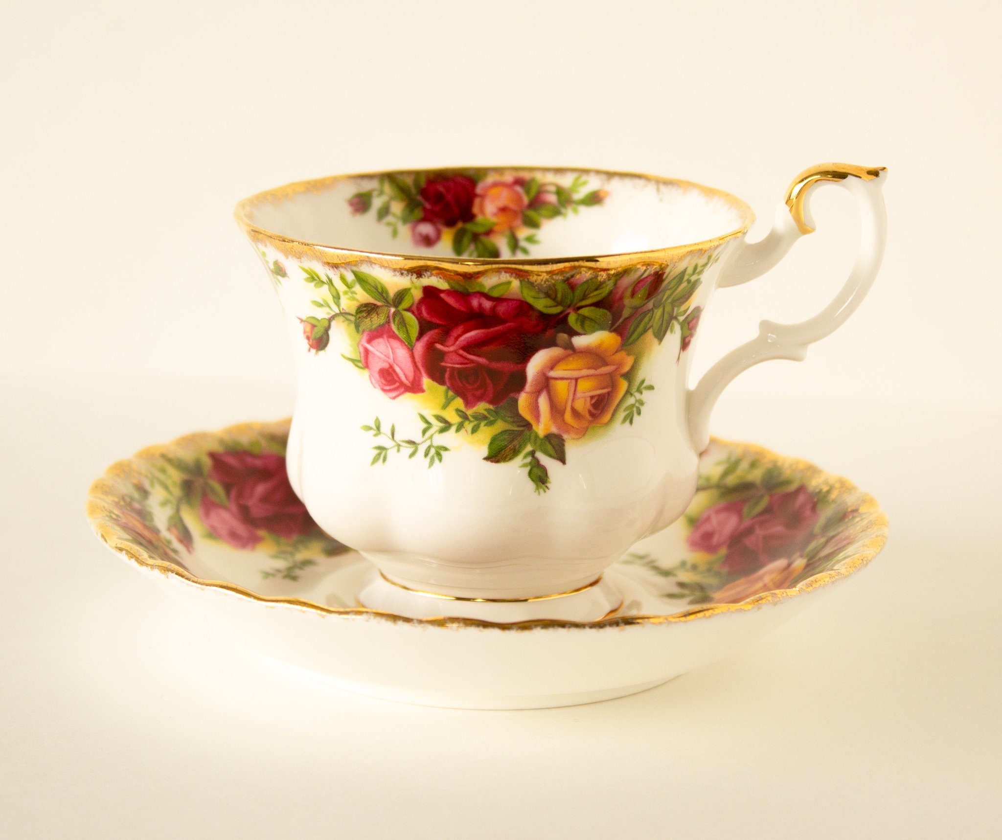 Rare 3 pièces Royal Albert Old Country Roses Chna rouge rubis La porcelaine n'est pas blanche, mais d'une belle et délicate couleur ivoire, qui dégage une chaleur incomparable sur chaque table. 395270438300 Tasse à thé et sa soucoupe fabriquée en Angleterre par Royal AlbertSérie Old Country Roses, en porcelaine blanche avec de magnifiques bouquets fleuris et une riche bordure dorée. Dimensions totales : D5-1/2 x H3En excellente condition, aucun bris observé. La signature du fabricant est sous l'item. **Cet article est disponible en ligne seulement. Si vous désirez le voir en boutique... Un sapin de Noël décoré avec des rubans, des nœuds et des boules devient le point docal de chaque pièce Les motifs floraux de roses rouges et jaunes sont inspirés d'un véritable jardin anglais Soucoupe Royal Albert Old Country Roses - Le motif le plus vendu de... Cadeau Noel Maitresse SELTMANN WEIDEN MARIE-LUISE Soucoupe De Thé Soucoupe Nostalgie De Noël Tasse Noël Le service Royal Doulton Old Country Roses pour sapin de Noël ajoute une touche saisonnière et de chaleur à n'importe quelle table. Dispose de roses vives traditionnelles formant une bordure de vacances avec des touches saisonnières