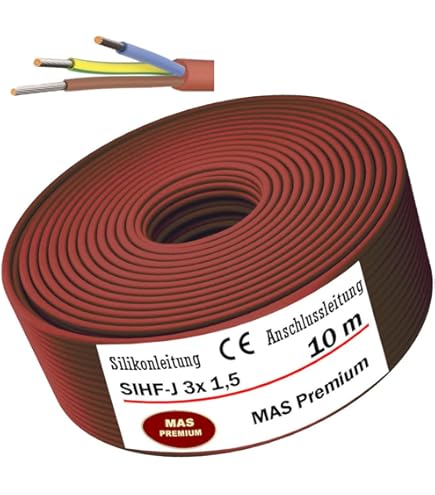 Conducteur SIHF-J résistant à la chaleur - Construction : conducteur flexible à fil fin en cuivre étamé. Par exemple pour votre sauna : câble de sonde (capteur d'humidité) – Câble de raccordement éclairage (douilles avec pince de terre) – Câble de raccordement pour poêles de sauna / appareils de chauffage // 99,9 % de cuivre OFC étamé – Qualité professionnelle. Câble en silicone SIHF-J - Section 3 x 2,5 mm² (nombre de fils : 3 - code couleur) - Diamètre extérieur : environ 9,7 mm environ Le câble SiHF contient 2 à 24 fils. Il se compose de plusieurs lignes en cuivre étamé à fils fins enveloppées dans une isolation en silicone (2GI1). Ces... Real Cable TV-2 Conducteurs cuivre désoxygéné à 99,99 % (OFC)Adapté 75... Cable Electrique Câble En Silicone SIHF-J 3G2,5 Mm² Pour Sauna Cable Electrique 1.5 Données techniques : tension nominale : 300/500 V, plage de température de - 50 °C à + 180 °C en fonctionnement continu, jusqu'à + 250 °C pendant une courte période - Mode de courbure (RW) : 10 x D. câble souple HO5VV-F âme cuivre nu câblé 3G2,5 mm2 poids 164 kg/km blanc - couronne de 100 m - ( à la couronne ) - tarifé au 100 ml Fabriqué au mètre pour vous Utilisable pour : sauna, terrarium, application industrielle ou technique (les données techniques vérifient si la section est adaptée) Il suffit de sélectionner la section transversale souhaitée avec la longueur indiquée en mètres et d'ajouter le produit sélectionné dans le panier
