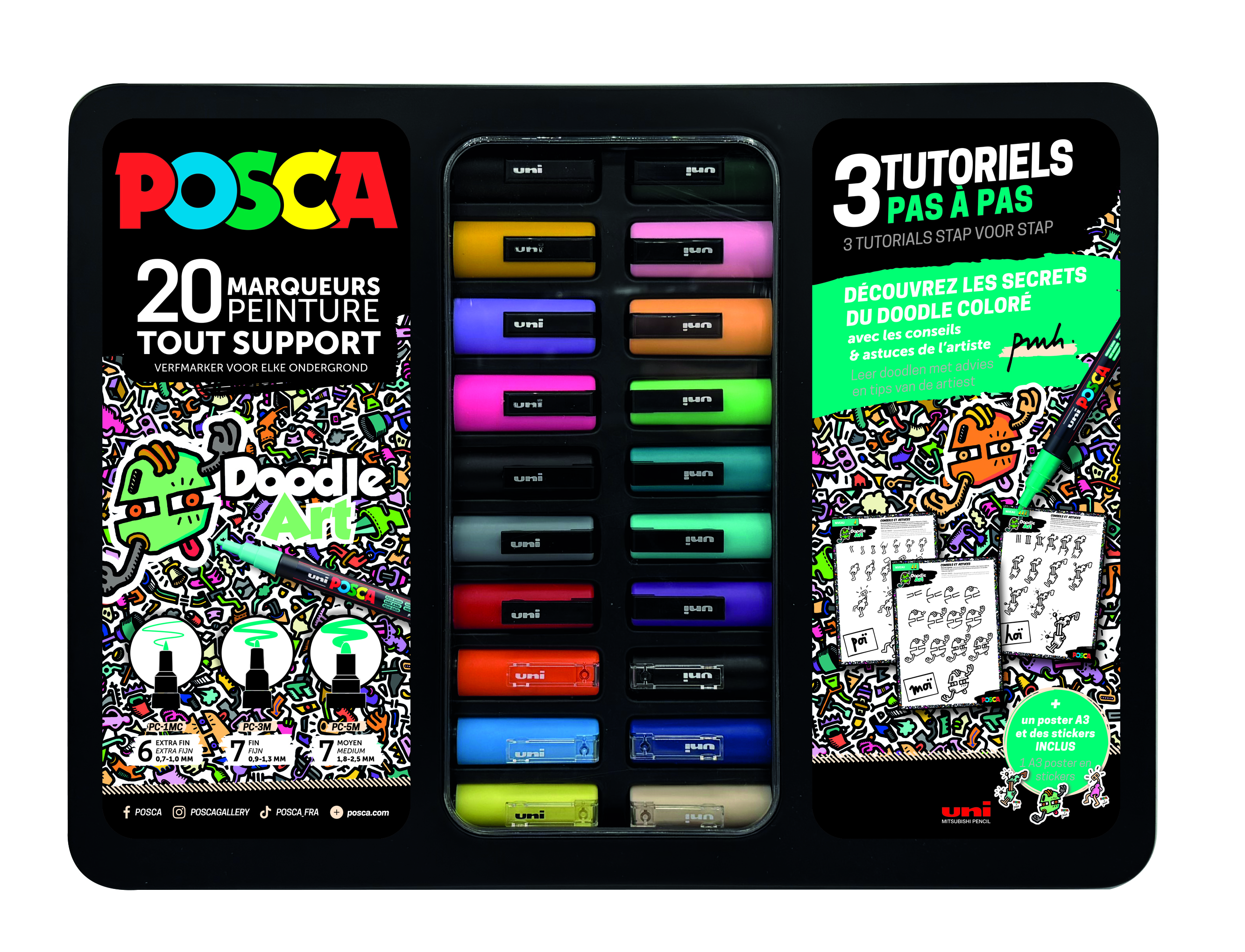Le même mécanisme est utilisé pour amorcer le POSCA et pour re-saturer la pointe aussi souvent que nécessaire lors de la création. La pointe très fine du PC-1M est idéale pour les créations au format réduit. Disponible en 22 couleurs, ces encres sont mélangeables et superposables. Solubles dans l'eau, non toxiques, elles sèchent rapidement et peuvent être utilisées sur une variété de surfaces Peinture de qualité supérieure : très riche en pigments, la peinture Posca offre des résultats d'une densité incomparable. Posca Pc 1mc Marqueurs Posca Pc-1m - Lot De 8 Tons Pastel - Pointe Fine 0,7mm - Multisurfaces Feutres Peinture Posca Feutre Pointe ultra résistante : la très haute qualité des matériaux utilisés garantit un trait toujours parfaitement lisse. Le système de valve garde les pointes toujours humides et prêtes à l'emploi. Parfait pour le lettering, la customisation, les rocks painting, ou même les... Marqueur Multi-surfaces Posca - Lot De 3 Marqueurs PC-1M Pour Dessin Précis - 0,7mm - 22 Couleurs Disponibles Uniball Posca Marqueur Sa formule unique à base d'eau offre des couleurs vives, mates et opaques qui résistent au passage du temps. Utilisation multi-surfaces : peut être utilisé sur du papier calque, du papier photo, du papier cartonné, de l'argile, de la pierre, des roches, du ciment, du bois, du métal, des tissus, du plastique, du verre, du cuir, et même plus de surfaces.