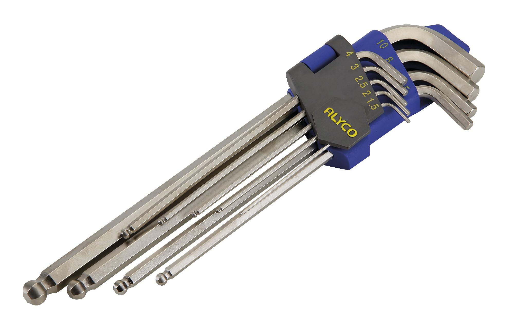Alyco 193130 193130-Juego 9 llaves Allen de bola Serie extralarga CR-V niqueladas 1,5-2-2,5-3-4-5-6-8-10 Juego De Llaves Allen Hexagonales Acero Uso Industrial No se mellan y recuperan su forma por mucha fuerza que hagas, incluso metiendoles un tubo para hacer mas fuerza. El mejor producto de Alyco y posiblemente... Alyco 193130 193130 Juego 9 Llaves Allen De Bola Serie Extralarga CR V Niqueladas 1,5 2 2,5 3 4 5 6 8 10 Juego De Llaves Allen De Bola Extralarga, Soporte De Plástico ALYCO...