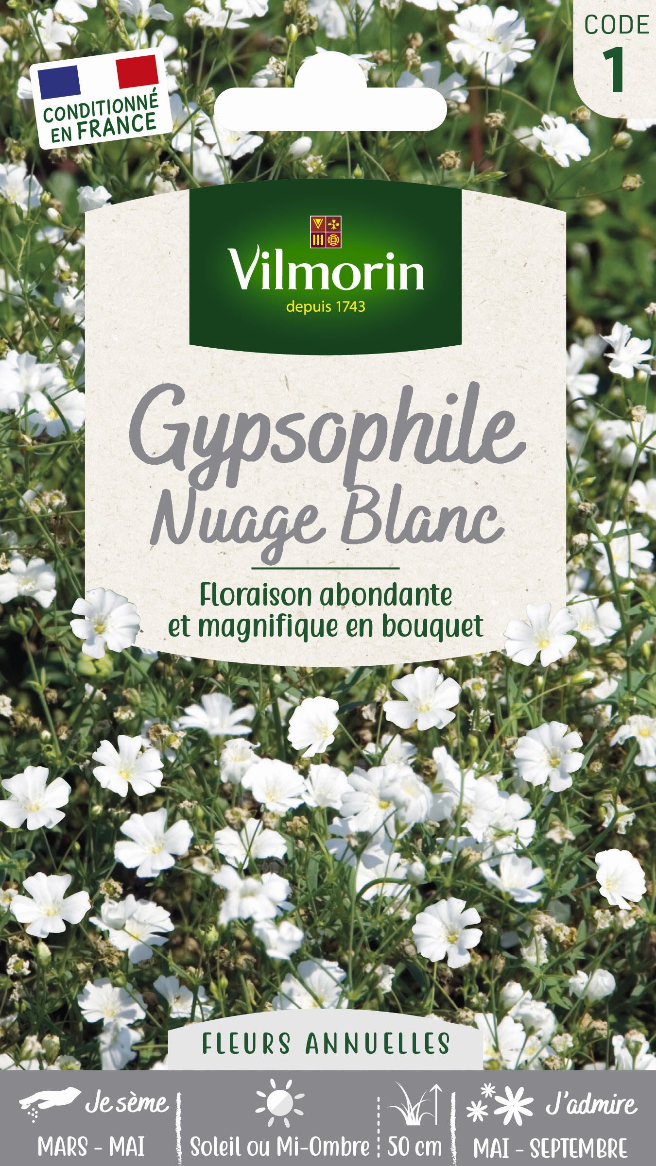 GYPSOPHILE ELEGANS BLANC: Variété annuelle à la floraison très abondante composée d’une multitude de petites fleurs blanches très fines et très légères. Gypsophile Graine Graines De Gypsophile, Blanc Bio - Acheter En Ligne Graines De Muguet Les informations ci-dessous s'appliquent à chaque unité du pack Graines de fleurs GYPSOPHILE GEANT BLANC ROI DES HALLES (Gypsophila elegans) - Graineterie A... Germisem Graines Mâche De Toutes Saisons Favor Ec6032 Multicolore[u235 Commandez dès maintenant nos graines potagères et florales pour votre jardin ! On la cultive en plein soleil. 45-60 cm de haut. Sachet : environ 160 semences. 1 g : environ 1 050 semences. Semences artisanales de source locale, provenant... Convient pour les bouquets et comme fleur séchée , Très facile à semer , Germination en 14 jours Il est souvent appelé Brouillard par les fleuristes qui l'apprécient pour son rôle liant dans les bouquets composés.