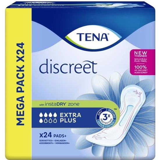 Description du produit TENA Discreet Normal offre une protection discrète et sûre pour les fuites urinaires modérées. Conditionnement : paquet de 12 serviettes en pochettes individuelles. Pour une plus grande praticité et hygiène. Dimensions de chaque protection : 13 x 39 cm Elle est conçue pour les femmes ayant une vessie sensible et offreune capacité d'absorption remarquable et une protection discrète toute la journée. Incontinence Femme Tena Serviettes Hygiéniques Maxi - Le Paquet De 12 Ultra Discreet TENA Discreet Normal est idéale pour les fuites urinaires, vous offrant la sécurité dont vous avez besoin et la discrétion que vous souhaitez. Sa zone instaDRY™ absorbe l'urine en quelques secondes, grâce au noyau super absorbant qui retient l'urine au cœur de la serviette, vous offrant jusqu'à 12... Promo Serviettes Lady Discreet Normal Tena chez Monoprix La triple protection assure l'absorption rapide des fuites, des odeurs et de l'humidité. La protection douce présente une coupe anatomique avec des élastiques latéraux souples.