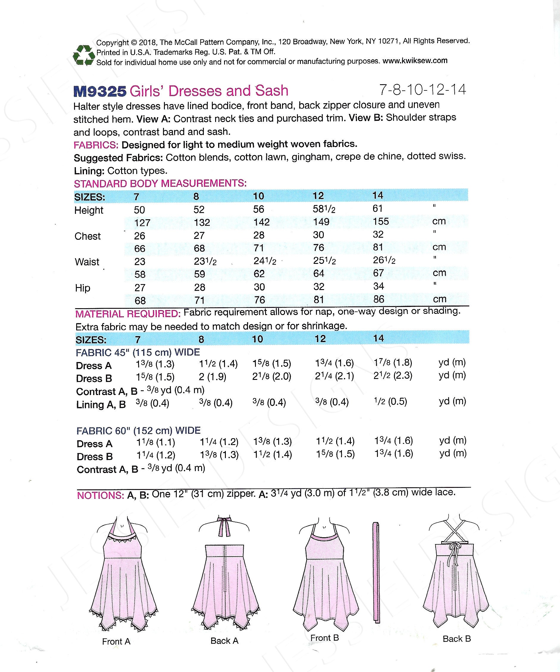 Veuillez noter : une fois ouvert, coudre des motifs ne sont pas remboursables. NOTES : A, B, C, D : 2 mètres de 1/2 à 11/2 de ruban. Combinaisons de tailles : TAILLES : CCE (3 4 5 6) ou CHJ (7 8 10 12 14) Sélectionnez la taille lors du... Robes rondes pour enfants/filles - Patron de couture MCall's Très facile à suivre avec instructions claires. Patron Couture Mccall's Gratuit McCalls Patron De 6915 Patron De Couture Pour Enfant/fille Girls Sewing Patterns PDF Marque. McCall's · Taille. CHJ (7 8 10 12 14) · Matériau. Papier · Type de média. PhysicalPattern · Utilisations recommandées pour le produit. Robes · UPC Please Note: You Are Purchasing A Pattern Which Includes Instructions To Help You Make The Items Pictured - You Are Not Purchasing The Finished Items. Instructions for this item are in English., McCalls-6915-CHJ, mccalls Pattern
