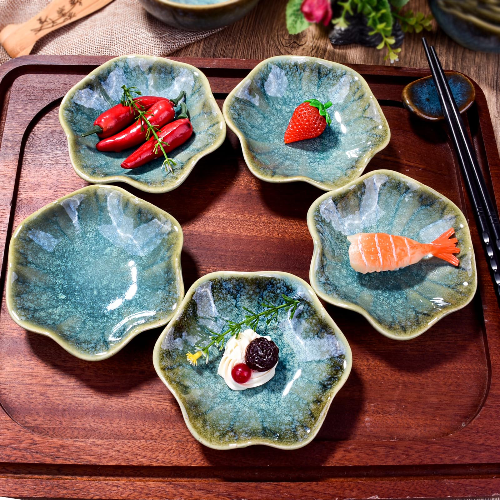 Ils sont faciles à nettoyer et passent au lave-vaisselle. Cet ensemble est parfait pour les sushis, les sashimis et autres plats japonais, et fait un excellent cadeau pour les amateurs de nourriture. La dégustation de sushi, tout un art BOSILI Lot De 5 Plats à Sauce Soja Japonais Pour Sushis Sauce Accompagnement Hy Ce lot de 5 plats à sauce japonaise BOSILI est parfait pour contenir des sauces, de la sauce soja et d'autres condiments. Lot de 5 : le lot comprend 5 plats à sauce, offrant suffisamment d'espace pour vos sauces et condiments préférés. 6 PCS Plats de sauce en acier inoxydable. Ils sont parfaits pour les pendaisons de crémaillère, les anniversaires, les mariages, et plus encore. La taille compacte est parfaite pour ranger dans vos armoires de cuisine ou recevoir des invités. Utilisation polyvalente : ces ustensiles peuvent être utilisés pour une variété d'usages, y compris pour contenir des sauces, des sauces, des vinaigrettes et plus encore. Sauce soja : ses bienfaits et ses utilisationsFleur de Sushi... La base en céramique assure une grande stabilité, tandis que le dessus en verre permet de voir facilement le contenu. Cette transparence est idéale pour... Bols de service transparents, conteneurs de Buffet, bols de collation à. Avec motif en forme de feuille de lotus, il est délicat et beau.