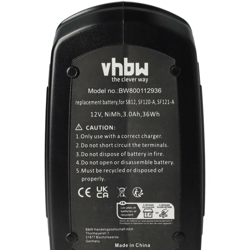 Batterie pour Hilti visseuse sans fil SB12 NiMH, 12V, NiMH, , Batterie compatible , compatible cellules de haute qualité AccuCell NiMH Batterie Approprié Pour Batterie Outil Hilti B24 Avec 3000mah Visseuse 12v Vhbw Batterie Compatible Avec Hilti SFL 12/15, SF 151-A, SFH 151-A, SF 150-A Outil électrique (3000 MAh, NiMH, 15,6 V Batterie Hilti Tension 21,6 V Capacité de la batterie - Couple max 55 Nm (vissage en bois tendre) 75 Nm (vissage en bois dense) Vitesse de rotation à vide Vitesse 1 : 365 tr/min Vitesse 2 : 625 tr/min Vitesse 3 : 1440 tr/min Vitesse 4 : 2460 tr/min Positions de réglage du couple 15 Dimensions (L x l x h) 242 x 69 x 226 mm Poids 1,9 kg La pile de réplique NiMH de haute qualité de AccuCell Allemagne convient à vos outils sans fil 12 volts Hilti. Merci à ses dimensions d'environ 11,5 x 9,5 x12... Contrairement à bon nombre de concurrents, la capacité de nos batteries est réelle et garantie. Cette batterie NiMH a une capacité de 3000mAh, une durée d'utilisation prolongée, et moins d'interruptions de charge, conformément à nos annonces. Profitez de cette source d'énergie fiable pour vos projets de bricolage