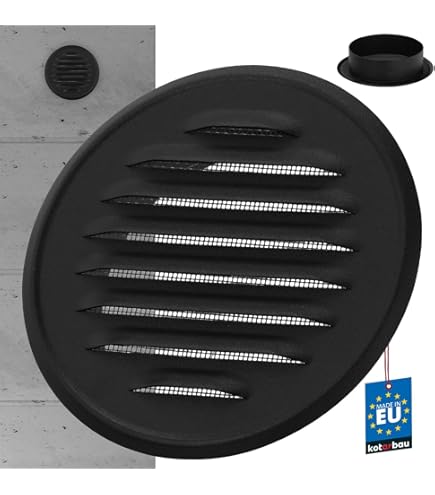 Cette grille ronde universelle est à encastrer puis à coller. Dimensions extérieur : 100mm. Dimensions d'encastrement : 95mm. Passage d'air de 40cm² Avec moustiquaire. Matériau durable : Fabriquée en plastique résistant, elle assure une longue durée de vie et une maintenance minimale. Esthétique discrète : Son design simple et sa finition blanche lui permettent de s'intégrer... Lot de 2 - Couleur : graphite/gris foncé - Modèle : T30 - Matériau : plastique avec moustiquaire. Idéal en aération et ventilation naturelle ou en prise/rejet d'air extérieur Raccordement direct au conduit d'extraction : disponible en diamètres 100, 125 & 150 Montage mural ou plafond Fixation par vis non apparentes - façade à clipser se retirant facilement pour nettoyage Compatible usage extérieur : en plastique traité anti UV | Avec moustiquaire AWENTA Grille d'aération ronde en plastique ABS Blanc Taille intérieure... Grille De Ventilation Ronde Grille D'aération Circulaire 100mm Aluminium - EL-A-R100 ALU | Ventigo Grille Ventilation 100mm KOTARBAU® Grille de ventilation 100 mm Ronde Anthracite à Lamelles Raccord de Tuyau en Plastique