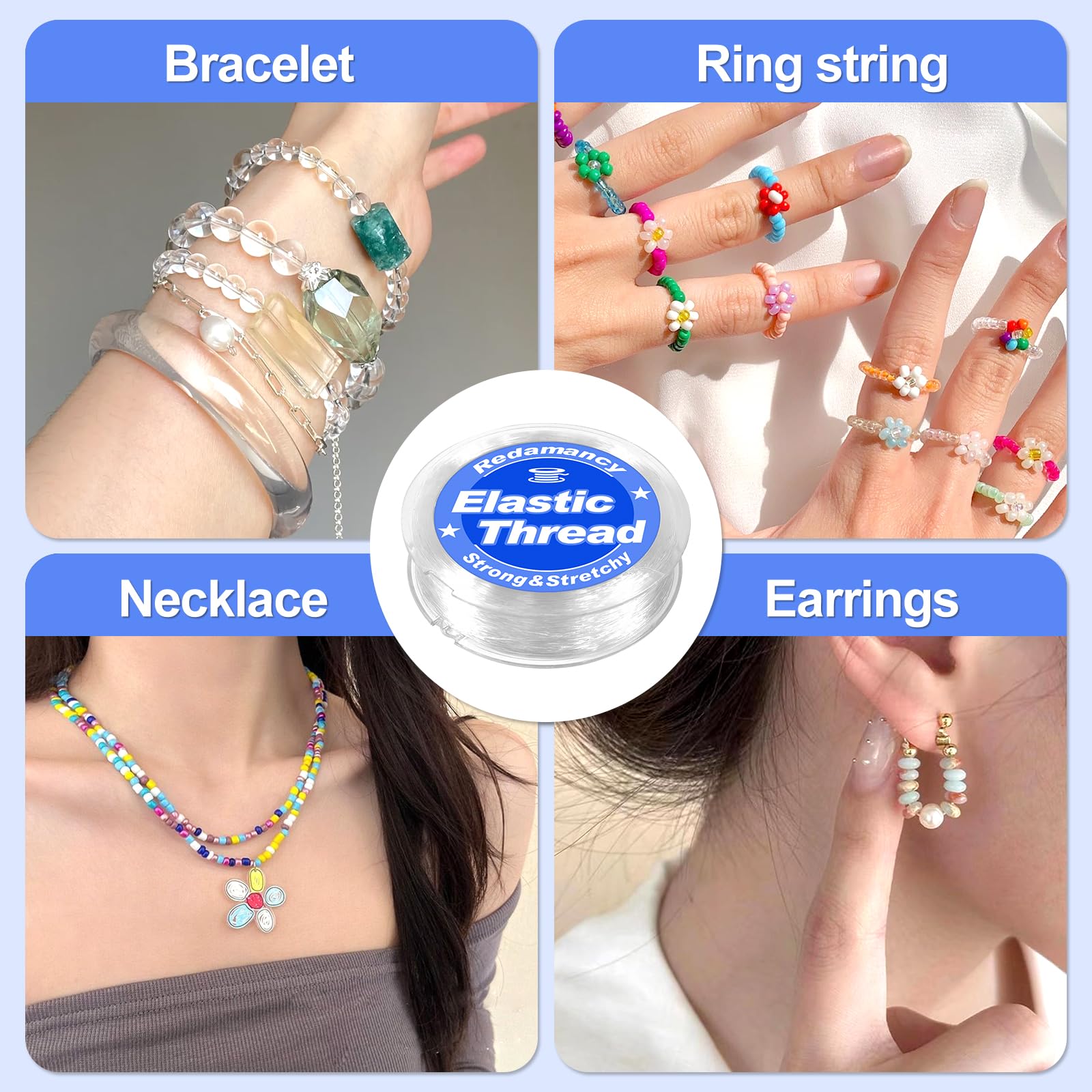 Facile à utiliser : La corde en nylon peut être facilement passée à travers les perles et nouée. Redamancy Fil Bracelet Perle peut être utilisée pour fabriquer des bracelets, des pendentifs, des colliers et d'autres objets d'artisanat, ce qui est un choix idéal pour vos bijoux de bricolage., 100m*0., 5mm Fil Bracelet Perle + 1 Aiguille Perle, Caractéristiques : 1., Composé d'élasthanne, qui est très extensible, solide et résistant à la déchirure., 2., La corde en nylon est facile à enfiler à travers les perles et les nœuds. Perles Pour Bracelet Redamancy 2 Rouleaux Fil Bracelet Perle,0.6mm Fil Transparent Elastique Bijoux,Fil Nylon Elastique Pour Bracelet,pour Fabrication Bracelet,Collier Et Fil Transparent Suspension Facile à cacher le nœud derrière la perle., 3., Facile à transporter partout pour réaliser votre bracelet DIY. Comment Utiliser: ÉTAPE 1 : Besoin d'utiliser des outils : cordon extensible, perles, ciseaux et fil de perle. Redamancy 4 Pcs Fil Élastique Transparent pour Bracelets Même les débutants peuvent en profiter., 4., Vous pouvez utiliser ce fil extensible élastique transparent pour fabriquer vos propres bijoux, colliers et bracelets, et les offrir à votre famille comme cadeau pour un anniversaire., 5., Trouvez des modèles de bijoux que vous aimez, et avec vos enfants, partenaires ou amis, vous pouvez les mélanger et les assortir dans vos styles préférés selon vos propres souhaits. Emballage : contient un rouleau de cordon élastique, environ 0.5 mm de diamètre, chaque rouleau mesure 100 m de long avec 1 aiguille perle, idéal pour la fabrication de bracelets, la fabrication de bijoux, les perles, la fabrication de colliers et d'autres projets d'art et d'artisanat