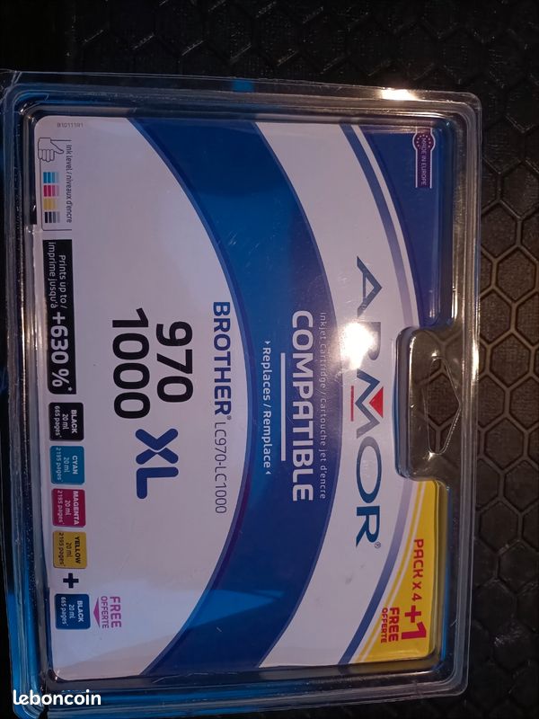 Imprimantes compatibles : Brother DCP-105CN, DCP-130C, DCP-135C, DCP-150C, DCP-153C, DCP-155C, DCP-157C, DCP-330C, DCP-330CN, DCP-350C, DCP-353C, DCP-357C, DCP-540CN, DCP-560CN, DCP-750CW, DCP-770CW, MFC-235C, MFC-240C, MFC-260C, MFC-3360C, MFC-440CN, MFC-465CN, MFC-5460CN, MFC-5860CN, MFC-660CN, MFC-665CW, MFC-680CN, MFC-845CW, MFC-885CW. Chaque set contient 4 cartouches de chaque couleur : noir, cyan, magenta et jaune. Les cartouches sont 100% compatibles et sont livrées avec une puce. Elles... Brother Lc3217 Cartouches D'encre Brother LC-970 - Multipack Cyan, Magenta, Jaune, Noir - Compatible Imprimantes Brother LC-970 Multipack Cartouche d'encre 100% compatible avec votre imprimante jet d'encre Brother Pack De 4 Cartouches D'encre Compatibles Brother LC 1000 / LC 970 Black Cyan Magenta Yellow 1 LC1000Y 400 pages Ajouter au panier Pack de 3 cartouches d'encre Brother LC1000 Couleur (0,00 HT) 0,00 € TTC 1 1 1 LC1000RBWBP Voir les détails Pack de 4 cartouches d'encre Brother LC1000 Noir et couleurs (45,75 HT) 54,90 € TTC 1 1 1 1 LC1000VALBP Ajouter au panier Description Comparez par vous-même Compatibilité imprimante Avis Cartouche D'encre Compatible Brother LC970-1000 XL Noir. Cette cartouche est vendue dans un récipient au format XL et vous permettra d'imprimer en moyenne 500 pages.