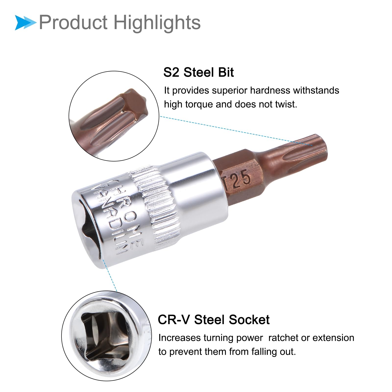La douille en acier au chrome-vanadium augmente la puissance de rotation. Embout de vissage RS PRO Torx, T25, L. 25 mm, Acier chrome vanadium Convient pour tous les tournevis et tournevis sans fil courants (attention au couple si nécessaire). Pour vis Torx; Entraînement hexagonal 1/4; En acier S2 de... ★ Large gamme d'applications --- Les embouts de tournevis sont des outils de réparation manuels pour les applications de fixation qui peuvent vous aider à réparer des voitures, des vélos, des motos, des machines, des appareils électroménagers, des travaux de construction, du travail du bois, etc. Lorsqu'il est utilisé avec un cliquet, il augmente la vitesse de serrage des fixations à entraînement hexagonal. --- L'extrémité de la mèche est chanfreinée pour une insertion facile des fixations et protège la mèche et les fixations des dommages aux bords. --- L'extrémité d'entraînement carrée convient pour les cliquets ou les rallonges, les empêchant de tomber. ★ Acier S2 et CR-V --- L'embout de tournevis est en acier allié S2 avec une grande dureté et une forte résistance à la rouille. Marquages de taille estampés pour une identification facile. Inspectez régulièrement la douille pour détecter les signes d'usure ou de dommage, et remplacez-la si nécessaire. Lot de 30 embouts Torx T25 - 1/4 - 25 mm de long - En acier S2 - Protection contre la corrosion - Avec embouts de 60 mm - Pour bricolage et réparation professionnelle Embout Torx T25 TOURNEVIS,T40--Embout De Tournevis Torx Long 1-4 ", 1 Pièce, Acier Allié S2 50mm, Poignée Embout T25 Leroy Merlin ★ Conseils utiles --- Assurez-vous que la douille s'adapte parfaitement à la fixation hexagonale avant d'appliquer une force.