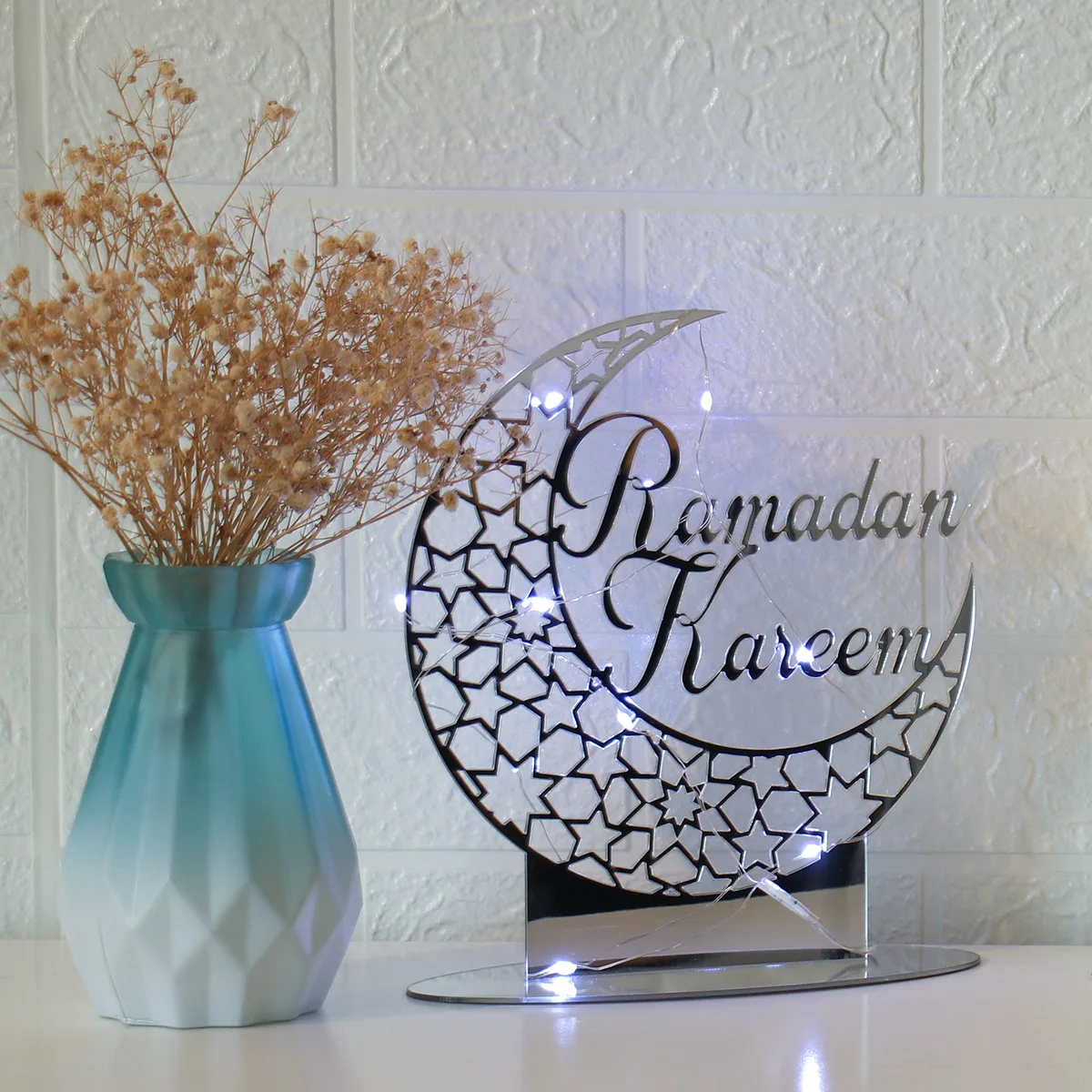 Transformez votre maison en un environnement chaleureux et accueillant avec ces jolies veilleuses. La lumière LED acrylique Ramadan est un merveilleux ajout à votre maison pendant le mois sacré du Ramadan. Decoration Table Aid Moubarak Lampe Ramadan Eid Mubarak Décoration De La Maison Décoration De Vacances Cadeau LED Lanterne à Deco Table Aid Mubarak - Matériau : acrylique de haute qualité. - Couleur LED : blanc chaud. Carte d'invitation eid mubarak avec décoration islamique et lanterne - Dimensions : environ 19 cm (hauteur) x 16 cm (largeur). Cette petite lanterne LED en plastique et verre blanc (9.4x15.1cm) a un design de palais avec des motifs de lune, étoiles et lanternes. Elle émet une lumière... Motifs Ramadan : les lumières acryliques sont décorées de magnifiques motifs du Ramadan, créant ainsi une atmosphère authentique et traditionnelle. Laissez-vous envoûter par les designs magiques et profitez du sentiment de spiritualité. Veilleuses Ramadan : nos lumières LED en acrylique sont parfaites pour créer une atmosphère festive pendant le mois sacré du Ramadan. Cette lampe Ramadan Mecctuck, elle crée une ambiance magique pendant le mois sacré ! En acrylique doré avec des motifs d'étoiles, de lune, et de château... Découvrez des images générées par IA et des photos de stock, et faites passer vos projets au niveau supérieur avec des ressources de haute qualité ! #freepik Matériau de haute qualité : les veilleuses sont fabriquées en acrylique de haute qualité et soigneusement polies pour assurer une surface lisse. Contenu de l'emballage : 1 décoration en acrylique., 1 support., Remarque : 1., Les mesures étant prises à la main, les tailles indiquées peuvent varier légèrement., 2., Si vous avez des questions sur le produit, vous pouvez nous contacter directement et nous serons heureux d'y répondre pour vous.