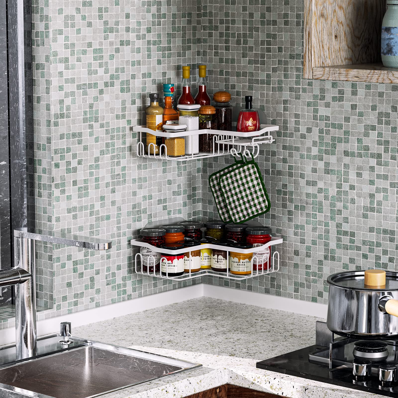 Vous pouvez régler la hauteur entre les étagères à tout moment pour faciliter la tenue de vos produits de bain. Pour plus de tranquillité d'esprit, nous fournissons également trois crochets adhésifs pour améliorer la stabilité de l'étagère de douche pour l'intérieur de la douche, vous pouvez l'utiliser en toute confiance. Ce panier de douche s'adapte parfaitement dans le coin de votre salle de bain et dispose d'une étagère à 4 niveaux pour ranger tous vos articles de toilette en un seul endroit, maximisant chaque centimètre d'espace disponible. Si vous n'êtes pas satisfait de cet organisateur de douche de salle de bain, n'hésitez pas à nous contacter. HapiRm Étagère Douche, Étagère De Douche D'angle, Étagere Caractéristiques : Forte capacité de charge – Charge maximale : 13,6 kg. Le panier de douche réglable HapiRm dispose de 2 porte-savon, voulez-vous vous brosser les dents lorsque vous êtes sous la douche ? Le support de brosse à dents HapiRm peut être monté ou démonté pour une double utilisation, le tout selon vos souhaits. Remarque : les plafonds inclinés ne peuvent pas être utilisés. Description : L'étagère de rangement d'angle de salle de bain HapiRm utilise un design à quatre couches, avec chaque couche capable d'accueillir 3 à 7 bouteilles de différentes tailles. Organiseur de douche réglable en hauteur : les barres de montage de notre étagère de douche disposent d'un design à ressort unique qui vous permet de personnaliser la longueur de cette étagère de douche. Rangement multifonction : notre étagère d'angle de douche est livrée avec 22 crochets conçus pour accrocher des rasoirs, des boules de bain, des serviettes, etc. HapiRm Organiseur D'angle De Douche – Antirouille Et Imperméable Grande capacité : rangement de diverses fournitures de linge. HapiRm Étagère de douche d'angle à 3 niveaux en acier inoxydable avec porte-savon, étagères de douche antirouille avec 4 crochets pour shampooing, après... Achetez maintenant chez VEVOR. Étagères à 4 niveaux et gain de place : vous en avez assez du désordre dans votre salle de bain ? Le panier de douche d'angle HapiRm est une excellente solution à cette nuisance pour vous. ✅【Taille et service après-vente】Les dimensions des quatre étagères sont de 22,3 x 11 x 6,5 cm, le poteau de tension d'angle HapiRm est adapté pour un espace de 264,9 à 289,1 cm. Facile à installer : peut être installé en quelques minutes. Matériau durable : acier inoxydable 304., Antirouille : avec revêtement antirouille. Que votre salle de bain soit compacte ou spacieuse, cet organisateur de douche d'angle peut être ajusté pour s'adapter aux espaces entre 264,9 et 289,1 cm, veuillez mesurer avant d'acheter.