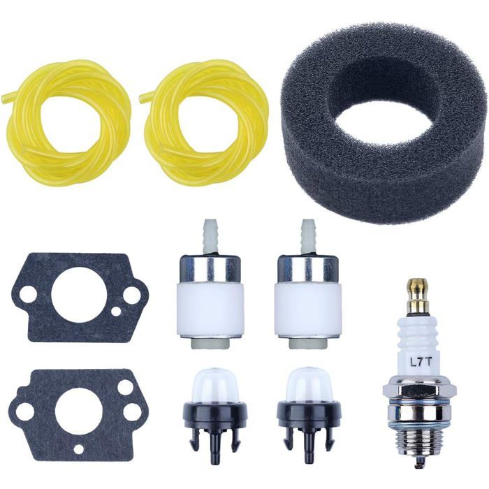 Compatibilité : for souffleur 280 280r 310BVR RGBV3100, motoculteur 410rPour tondeuse 600r 700r 700rVP 704r 704rVP 705r 720r 725r 725rE 750r 765r 766r 767r 770rEB 775r 790rChacune des 2 conduites de carburant mesure 2 pieds de longRemplace # 791-682039 791-181086 791-683974 791-683974BLe forfait comprend: 1 filtre à air, 2 poires d'amorçage, 2 conduites de carburant de 2 pieds, 2 filtres à carburant, 1 bougie d'allumage, 2 jointsDébit d'air moteur amélioré: Ce kit de filtre à air de jardin maintient un débit d'air constant vers votre moteur, pour des démarrages plus fluides et des performances constantes. Débit d'air moteur amélioré: Ce kit de filtre à air de jardin maintient un débit d'air constant vers votre moteur, pour des démarrages plus fluides et des performances constantes. Vuzmode Kit de mise au point de filtre à air et de Le filtre à air est est essentiel à votre véhicule, c’est son poumon ! Il contribue à la filtration des impuretés contenues dans l’air afin de préserver votre moteur et assurer la bonne qualité de l’air qui circule Aucun outil complexe n'est requis: il suffit de remplacer l'ancien filtre et de rétablir un flux d'air propre vers vos outils de jardin, pour un entretien efficace et sans tracas. KIT DE FILTRE à Air Et De Conduite De Carburant Facile à Installer Pour Il réduit les obstructions dues à la poussière et aux débris, améliorant ainsi le fonctionnement de vos outils de jardin à essence. Il garantit le bon fonctionnement de vos machines de jardin en améliorant l'admission d'air et en réduisant le risque d'usure du moteur à long terme. Conçu pour un entretien régulier: ce kit de mise au point du filtre à air est idéal pour l'entretien saisonnier ou l'entretien courant. VERGASERSET PIPE-LINE JOINT Carburateur Filtre ?? Air Conduite pour...
