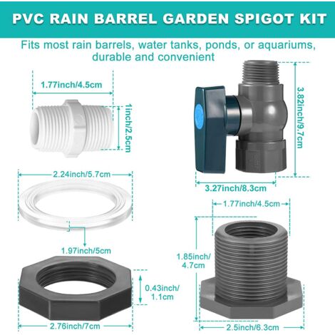 Il fournit une solution fiable et efficace pour la gestion de l'eau de pluie. Installation pratique avec vis à cloison : doté d'une connexion à vis de cloison qui offre un ajustement sûr et élimine les fuites sans avoir besoin d'outils supplémentaires. Réservoir Eau De Pluie Jardin Vanne De Vidange Pour Cloison De Réservoir, Valve De Baril De Réservoir D'eau De Pluie Extérieur Options de contrôle du débit efficaces : profitez de la flexibilité du contrôle du débit réglable qui aide à optimiser l'utilisation de l'eau en fonction de vos besoins. Il suffit de fixer un tuyau d'arrosage, et vous pouvez facilement utiliser l'eau recueillie à diverses fins. * Compatibilité : convient pour les aquariums, les piscines, les jardins. Il est adapté pour diverses applications telles que les aquariums, les piscines et les jardins. Compatible avec la plupart des récipients : la taille standard de 1,9 cm de cette valve la rend universellement compatible avec divers récipients pour une collecte efficace de l'eau de pluie. *Compatibilité : conçue avec une taille standard de 1,9 cm, la valve est compatible avec la plupart des réservoirs d'eau de pluie, ce qui la rend polyvalente et adaptée à différentes configurations. Bien choisir sa vanne PVC selon usage, pression, température et type de raccord. Récupérateurs d'eau de pluie PVC pour jardin et terrasse BOXOB Lot de 2 robinets de robinet de pluie en PVC de 1,9 cm avec Facile à installer, percez un trou de 38,1 mm dans le canon avant utilisation pour installer... Cela permet une distribution et une utilisation efficaces de l'eau. Il est facile à installer et ne nécessite aucun outil supplémentaire. Contenu de l'emballage : 1 kit de robinet. * Contrôle du débit réglable : la valve dispose d'un contrôle du débit réglable, vous donnant la flexibilité de réguler le débit d'eau selon vos besoins. Le réservoir d'eau pliable est parfait pour collecter et stocker l'eau de pluie de manière écologique et économique. Non seulement à la maison, mais aussi dans les petits jardins familiaux et même pendant les vacances en camping, le réservoir est prêt à l'emploi en un rien de temps