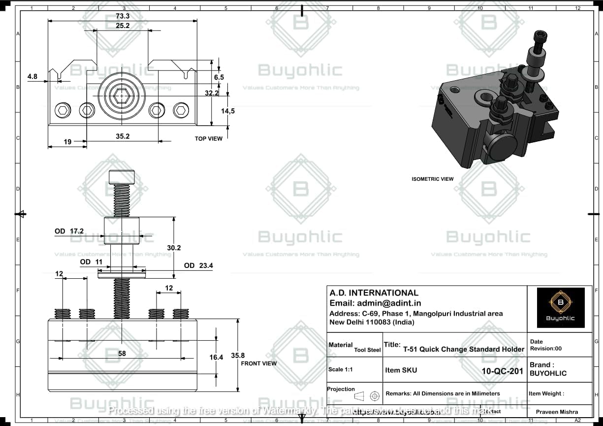 Fabriqué en acier trempé et rectifié avec précision. La capacité de ce support est de 16 mm. Support standard à changement rapide de qualité pour Boxford, South bend et autres tours de hauteur centrale de 125 mm à 150 mm CONVIENT POUR TOUR BOXFORD WARCO similaire. taille du bloc principal 72x72x51mm de haut (assurez-vous que le bloc principal n'est pas inclus avec ce support de rechange Taille de la lame : 0,3 cm x 1,9 cm x 1,5 cm. Support de coupe, durci et rectifié avec lame en acier rapide. T51 convient aux tours Boxford, South bend et... Support De Poteau à Changement Rapide Pour Machine Boxford Les dimensions sont données à titre de référence uniquement. Support à changement rapide HBM A1 Modèle ... | HBM Machines Taille du bloc (L x l x H) : 73 x 73 x 51 mm, alésage de montage : 16 mm Fabriqué en acier trempé de qualité et affûté avec précision. Le bloc à outils n'est pas inclus.