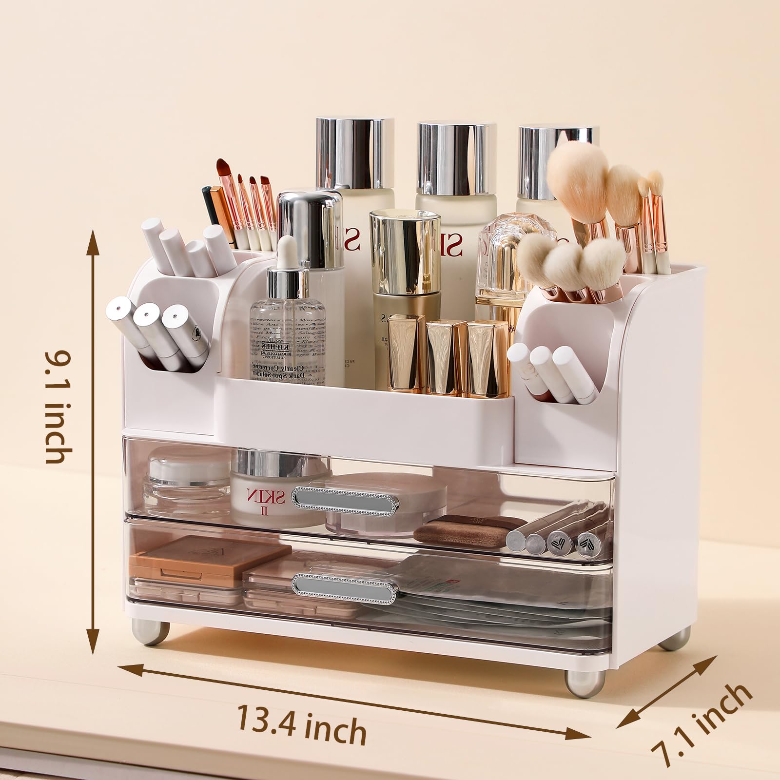 Caractéristiques Utilisation polyvalente Organisateur maquillage; Compartiment amovible Porte-pinceaux de maquillage doré, verre rond vintage, organisateur de... Rangement maquillage Matériel: Acrylique Couleur: noir transparent avec bord doré Détails d'emballage: 1 x boîte de rangement Dimensions: 19,6 x 8,6 x 10,1 cm Extra: 2 x Autocollants rectangulaires; 4 x Autocollants carrés Make Up Organiser JINTANG Organisateur De Cosmétiques,Rangement Pinceaux Maquillage,Avec Tapis Adhésifs, 4 Compartiment Grand Volume Boite Skincare Organiser,Dressing Table Organizer Makeup Box Salle De Bain Storage Boite Rangement Maquillage Idéal pour stocker des produits cosmétiques, des ustensiles de maquillage, des accessoires capillaires, des bijoux, des fournitures de bureau, des outils à main, des couverts, etc. Polyvalent: Que ce soit dans la cuisine, le Bureau, la salle de bain, le salon ou la chambre à coucher: de petits objets sont partout sur la table. Convient pour toutes sortes de tiroirs, tables. Les organisateurs de tiroirs en plastique aident à les organiser avec style. Haute qualité Organisateur de maquillage grand espace 【Espace de grande capacité】Rangement Maquillage Organisateur peut contenir beaucoup de choses. 4 x Autocollants carrés Organisateur Maquillage Rotatif 360 Degrés Rangement Maquillage Boite Pinceaux Skincare Coiffeuse Pour Salle De Bain Cosmetiques Noir 97323719 【Nombreuses utilisations】rangement pinceaux maquillage est très adaptée pour les chambres, les salons, les bureaux, les cuisines, les salles de bains ou n'importe où dans la maison. En plus des cosmétiques, il peut également stocker divers articles divers, lunettes, télécommandes, stylos, ciseaux, etc. JINTANG Organisateur de Cosmétiques,Rangement Pinceaux Maquillage,Avec Tapis adhésifs, 4 compartiment Grand volume Boite Skincare Organiser,Dressing Table... Diseño antideslizante Matériaux acryliques; Facile à nettoyer; Ne se fanera pas 【Matériaux de haute qualité】La boite rangement maquillage est en plastique hautement transparent et est magnifique, robustes, épaissi, plus durable, et améliore un certain degré de stabilité. Éloignez-vous des problèmes de stockage, un seau peut résoudre tous les problèmes. Le matériau facile à nettoyer élimine les taches rapidement et facilement avec juste un coton, une microfibre ou un autre chiffon doux.