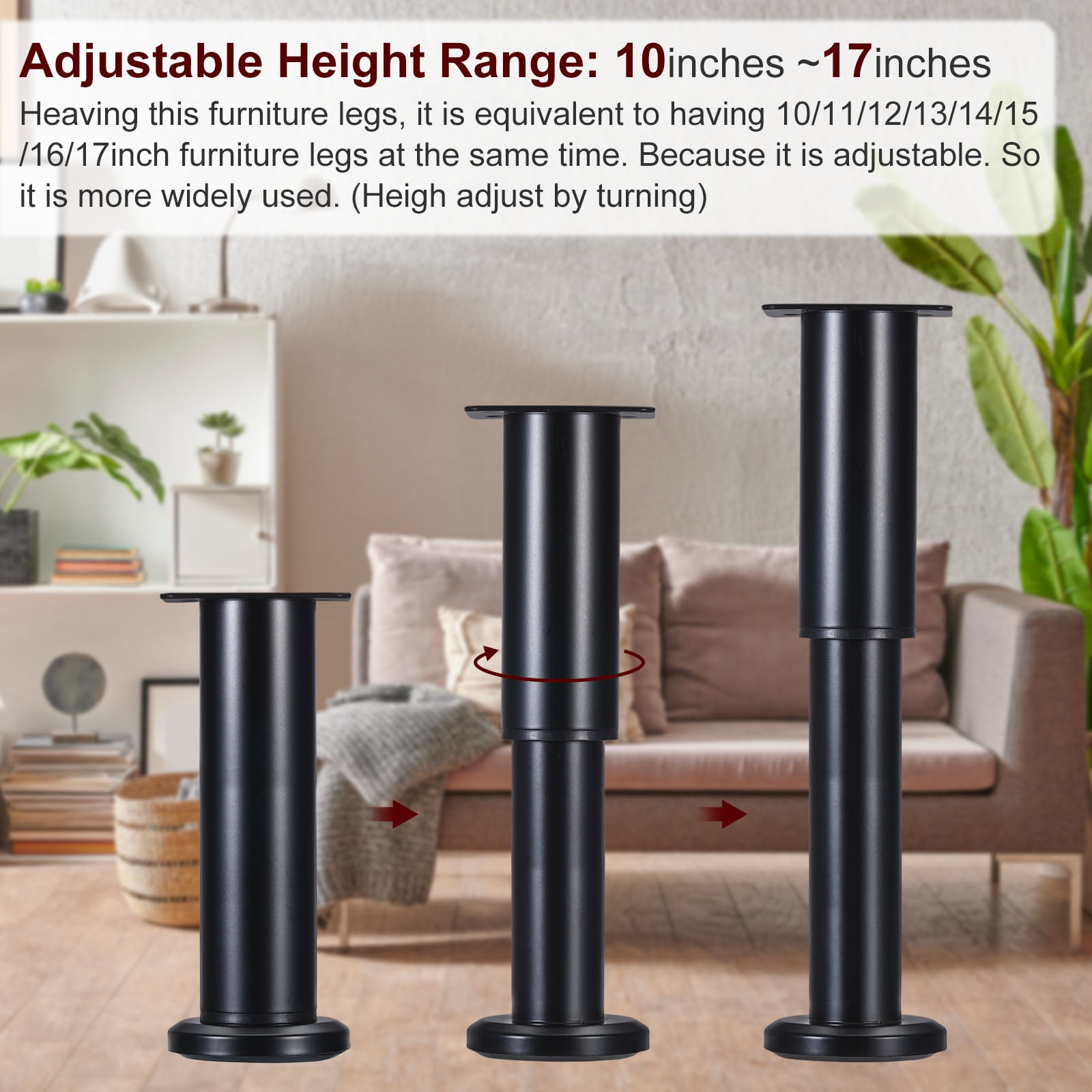 Vous pouvez régler la hauteur des pieds de meubles selon vos propres besoins d'installation. Convient non seulement pour les canapés, mais également pour les chaises, armoires, commodes, ottomans, tables basses, meubles TV et autres meubles de bricolage. Livraison gratuite 69,99 € TVA incluse Détails de l’offre tekenewbse 4 Pièces 10 cm Pieds de Meuble, avec 18 Pcs Vis Reglable Métal Table Basse Noir Pied, Hauteur Ajustable Pieds pour Meubles Canapé Bureau Cuisine Armoires Réglables Vendu par Détails du produit : 8 pieds de meubles réglables, 32 vis. La partie réglable peut ajuster la hauteur en fonction de diverses occasions., 3., Le design simple et élégant des pieds réglables peut rafraîchir vos meubles et apporter un nouveau look à votre maison, adapté à tous les styles de meubles tels que table de chevet, meuble TV, table basse, armoire, étagères, etc. Les pieds de canapé ronds sont polis, et les couleurs noires sont classiques et belles, ce qui est très approprié pour les amateurs de bricolage fait à la main et vos projets de décoration d'intérieur. Ils conviennent à tous les types de sols, y compris le bois, le carrelage et la moquette. La hauteur est de 50 mm, la plage réglable de la partie hélicoïdale est de 0 à 15 mm. Il suffit de tourner facilement les patins en plastique noir. Lot de 4 pieds de meubles réglables de 8 à 12 cm - En métal noir... Si vous avez des questions sur les pieds de meubles réglables, veuillez nous contacter immédiatement et nous vous donnerons la solution la plus satisfaisante. Pieds Réglables Pour Meubles Lot De 4 Pieds De Meubles En Acier Inoxydable Réglables Pied Reglable Pour Meuble 【Hauteur réglable】 Le design de réglage rotatif offre une plus grande adaptabilité et stabilité. Caractéristiques des pieds de meubles : 1., Nos pieds de canapé réglables sont fabriqués en acier inoxydable de haute qualité et ont également une base en plastique antidérapante, robuste et durable., 2., Les pieds réglables peuvent être utilisés comme support pour les cloisons de bureau ou les meubles pour rester stables sur un sol inégal. Multifonction : les pieds de meubles réglables peuvent être compatibles avec de nombreux meubles modernes. Contenu de l'emballage : 8 pieds de meubles réglables., 32 vis. Pieds de Meubles en Acier Inoxydable 4 Pcs Pieds de Meubles Réglables pour Canapé Table Armoires Étagères Ensemble