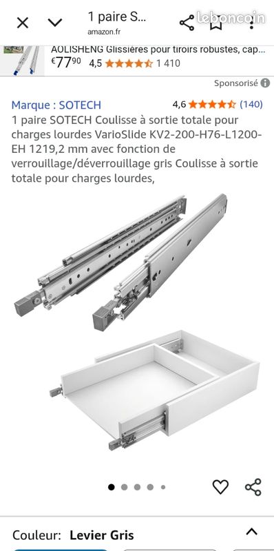 3 paires (6 pièces) de coulisses à sortie totale avec retour automatique Contenu de la livraison : 3 paires (6 pièces) Qualité supérieure absolue ! Comparez 4 paires Coulisse à sortie totale KV2 35 H45 L550 SE avec retour automatique Longueur 550 mm Hauteur 45 Glissière de tiroir capacité Kg SOTECH le spécialiste des glissières tiroirs chez . Comparez la plus grande sélection de boutiques en ligne et de produits. Achetez directement en ligne dans la boutique au prix le plus bas Contenu de la livraison : 4 paires (8 pièces) Une utilisation professionnelle nécessite un équipement professionnel. Matériau : Métal galvanisé / Longueur : Insérée 550 mm / Hauteur : 45 mm / Largeur : 12,7 mm Coulisse Tiroir Sortie Totale SOTECH 3 Paires Coulisses à Sortie Totale KV2 45 H45 L550 SE Avec Retour Automatique Hauteur 45 Mm O 1038243 Coulisse Tiroir Push Open SOTECH Lot de 3 paires de coulisses de tiroir à extension Avec fermeture automatique - la coulisse du tiroir se rétracte automatiquement sur les derniers 30 mm Comprend le paiement mensuel initial et les options sélectionnées. Demandez le retour d’un produit jusqu’à 14 jours après sa réception, sans motif, pour obtenir un remboursement complet (prix et frais de livraison) au titre du droit légal de rétractation. 4 paires de glissières automatiques de qualité supérieure...