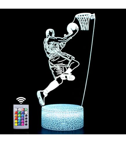 Lampe de chevet tigre thème jungle vert et marron chocolat. - Enfant... Avec 16 couleurs vives et alimentée par des perles LED, cette lampe comprend également une télécommande infrarouge pratique pour une utilisation facile. La lumière LED imite un ballon de basket-ball lumineux - parfait pour les chambres d'enfants, les salles de club de sport ou comme une décoration cool pour les fans de basket-ball. LISTE des LUMIÈRES 3D:1*Panneau en acrylique, 1*Base, 1*Câble USB, 1*Manuel d'utilisation. Modèle de câble de chargement USB, il peut durer 4 heures après une charge complète. Cadeau Ado Veilleuse Enfant Basketball 3D, Basketball Garcon Basketball Accessoires Idéale pour les chambres d'enfants, les voyages de vacances ou les pannes de courant. Cadeau idéal - Améliorez votre configuration d'éclairage avec nos lumières de basket-ball personnalisées. SMART TOUCH:La veilleuse basket est livrée avec un contrôleur tactile qui vous permet de régler 7 couleurs différentes à votre convenance. Cette veilleuse est un cadeau de Noël idéal, un cadeau d'anniversaire et un cadeau de récompense pour les garçons et les filles fans de basket-ball. Cette veilleuse est un cadeau de Noël idéal, un cadeau d'anniversaire et un cadeau de récompense pour les garçons et les filles fans de basket-ball. Elle peut également décorer les chambres d'enfants, les chambres à thème de club de sport, les fêtes à thème de basket-ball. Veilleuse de basket-ball 3D pour fans de sport, lampe de... Elle peut également décorer les chambres d'enfants, les chambres à thème de club de sport, les fêtes à thème de basket-ball. SYSTÈME D'ALIMENTATION DOUBLE:La veilleuse peut être alimentée par un câble USB (inclus) ou par 3 piles AA (non incluses). (Il suffit de toucher le bouton pour changer de couleur). Les bords arrondis et lisses rendent la veilleuse particulièrement sûre pour les enfants. Lampe Basketball 3D Decorative, Lampe De Chevet Chambre Intelligente A 7 Couleurs Pour Enfants Veilleuse Led Decorative Chambre Ado Pour A Coucher Cadeau D Anniversaire Pour Garcons Et Filles