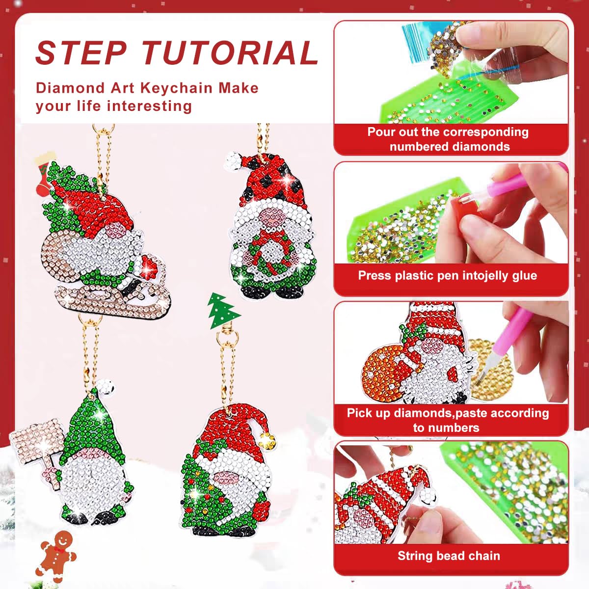 Découvrez notre vaste gamme de 12 pièces Porte-clés thème Noël avec diamants, kit de peinture diamant semi-fini, artisanat de mosaïque, art 5D, convient aux débutants DIY, facile à utiliser, pendentif pour sac à dos chez SHEIN, partie de notre Peinture (s) avec diamants & Accessoires Retours gratuits Livraison gratuite dès 39€ d... Description du produit Les décorations artistiques en diamant sont disponibles dans différents styles, y compris de nombreux motifs de Noël différents, des couleurs vives et des facettes en diamant complètes qui rendent votre artisanat plus étincelant et charmant. Avec le porte-clés assorti, vous pouvez les accrocher fermement n'importe où et éviter que le porte-clés de peinture diamant ne se perde., Remarques : 1., Pour éviter une réduction de la viscosité, n'exposez pas trop de zones non finies., 2., Une fois terminé, posez le livre dessus pendant quelques minutes pour le rendre plus ferme., 3., Ne laissez pas les enfants de moins de trois ans jouer avec des diamants pour éviter des accidents tels que manger accidentellement. Diamond Painting Noël Kit - 12pc DIY Porte-Clé pour Enfants et Broderie Diamant Porte Clef EKKONG Porte Clé Noel Diamant Painting, 26 Pièces Broderie Diamant Noel 【Passe-Temps Créatif】La peinture au diamant est une activité amusante et créative, adaptée aux enfants et aux adultes. Les couleurs claires et les designs brillants rendent ces porte-clés accrocheurs. Il vous permet de créer votre propre porte-clés en diamant étincelant tout en profitant d'un passe-temps relaxant, enrichissant votre temps libre et libérant votre créativité. Donnez à la clé une touche de Noël avec ses détails complexes et ses diamants étincelants. Avec l'outil fourni, les perles peuvent être facilement appliquées à l'endroit souhaité. Porte Clé Noel]Comprend 26 porte-clés de Noël avec peinture diamant et tout ce dont vous avez besoin pour commencer immédiatement. Avec l'outil fourni... Vous pouvez également offrir le produit fini comme cadeau chaleureux à vos amis, votre famille, votre amoureux, etc.