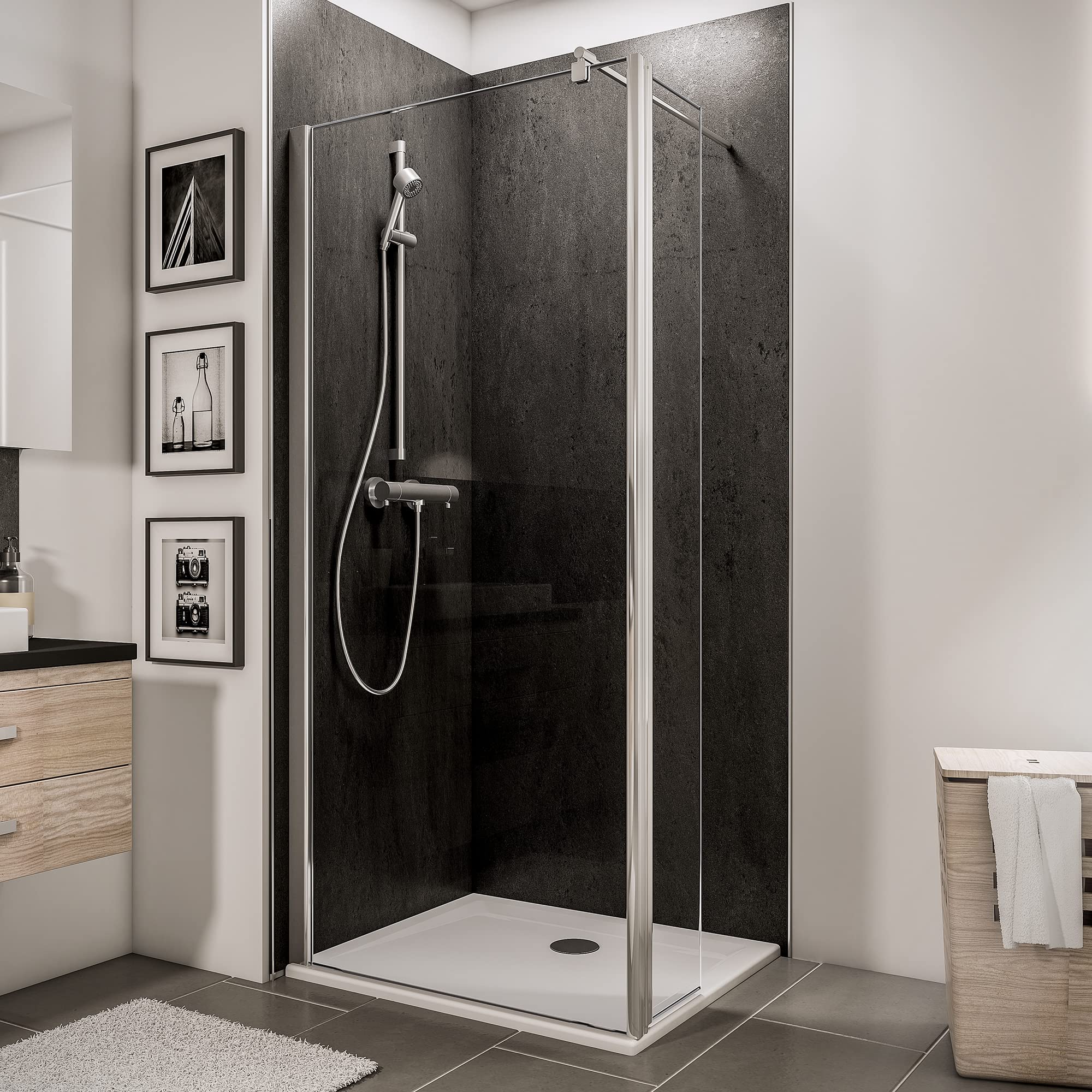 200cm, Walk In, verre de sécurité brume 6mm, profilé noir mat, Schulte NewStyle Pas besoin d'enjamber. Description du produit Découvrez dès maintenant l'ensemble de notre assortiment. Un site de production moderne Facile à entretenir Cette paroi de douche ouverte et sans encadrement est facile à entretenir. Vous n'êtes pas convaincu par ce produit ? Continuez dans notre boutique., ., ., Nous vous remercions pour votre choix et votre confiance en Schulte. Limite les accidents domestiques Paroi de douche fixe à l'italienne Un accès de plain-pied et une liberté de mouvement absolue! Accessible à tous Accès facile à la douche pour des personnes handicapées ou à mobilité réduite. Cette paroi de douche Walk In vous donne une liberté de mouvement absolue. Made in Germany La qualité signée Schulte Un savoir-faire depuis 1921 Vitre pour une douche grand espace facile à entretenir. Grâce à une notice de montage détaillée, même les petits bricoleurs occasionnels ne rencontreront pas de grosses difficultés. Ils se distinguent par leur design minimaliste, facile à nettoyer, ainsi que par des profils de clips astucieux qui simplifient l'installation. Paroi De Douche 120x200 Schulte Paroi De Douche Fixe à L'italienne 90 X 200 Cm, Profilé Cabine De Douche 90x90 Paroi de douche fixe à l'italienne déflecteur, 100 x 190 cm, Schulte Des contrôles de qualité rigoureux Un SAV première classe Le meilleur des matériaux Montage mural réversible (gauche/droite) Cette paroi de douche fixe est exclusivement fabriquée pour vous à la commande dans nos ateliers de production en Allemagne. Tendance, fonctionnel et intemporel Grâce à la possibilité de montage sur receveur ou carrelage, et à un montage réversible, vous bénéficiez d'une flexibilité maximale ! Pourquoi choisir une paroi de douche à l'italienne ? Nos modèles Walk-In offrent un accès facile, idéal également pour les personnes à mobilité réduite (PMR). Coloris des profilés, Noir ; Finition des profilés, Anodisé ; Traitement anticalcaire, Oui ; Matière principale sur la masse totale du produit, Aluminium et verre 6 à 8 jours. Livraison gratuite. 109,00 € TVA incluse. Schulte paroi de douche fixe à l'italienne 90 x 200 cm, barre 122 cm incluse, profilé noir, montage... Couleur du profilé : noir