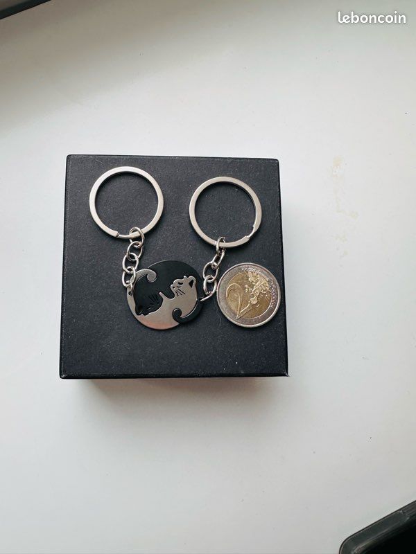 JJiaoLinin Porte-clés Couple Chat, Lot de 2 Porte-clés Puzzle Chat en Acier Inoxydable, Porte-clés Cadeau Couple, Porte-clés Chat Mignon pour Petit Ami, Petite Amie, Femme, Mari, Lui, Elle, Amoureux des Chats, Meilleurs Amis Spécifications Nom du produit : Porte-clés Couple Chat Couleur : Noir + Blanc Matériau : Acier inoxydable Emballage : Sachet en plastique Personnage : 1., Nos porte-clés couple sont fabriqués en acier inoxydable de haute qualité, robustes et élégants, avec une surface lisse, confortables à porter, ne rouillent pas, ne se décolorent pas et peuvent être utilisés longtemps., 2., Ce porte-clés couple présente un motif de deux chats enlacés, symbolisant le lien doux et éternel qui vous unit à votre partenaire. Il symbolise non seulement l'amour, mais aussi l'amitié et l'affection. Cadeau sentimental : Idéal pour les couples, ce porte-clés chat couple est un présent romantique et personnalisé. Compatibilité universelle:Convient à tous... Parfait pour les couples, les cadeaux de Saint-Valentin ou les anniversaires. Je vous souhaite un bon shopping ! Petit et raffiné, il symbolise votre amour., 3., Ce porte-clés longue distance est un excellent cadeau pour les amies, les meilleures amies, les filles, les sœurs et les femmes. Contenu de l'emballage 2 porte-clés chat pour couple Conseils Aimables En raison des différences de mesure manuelle et de résolution, il peut y avoir de légères erreurs de taille et de couleur. Polyvalent, il peut être attaché aux clés de la maison, de la voiture, des sacs, des portefeuilles, des sacs à dos, des boucles de fermeture éclair et des cordons. Si vous n'aimez pas le produit ou constatez qu'il y a des problèmes de qualité avec le produit, n'hésitez pas à nous contacter, nous ferons de notre mieux pour résoudre le problème pour vous dans les meilleurs délais ! 【Souvenir d'une relation à distance】Ce porte-clés couple est un rappel quotidien de votre relation spéciale. Lot de 2 porte-clés puzzle en forme de cœur en acier Cadeau Pour Couple Porte-clés Mignon De Léon Pour Couple, Cadeau Assressentipour Sa Petite Amie, Son Petit Ami, Son Amoureux Des Chats, Son Mari, Sa Femme Cadeau Moins De 5 Euros 【Choix de cadeaux polyvalent】Ce porte-clés cœur est un excellent cadeau pour votre petite amie, votre petit ami, votre conjoint, votre fiancée, votre ami, votre amoureux des chats, votre meilleur ami ou tout autre être cher.