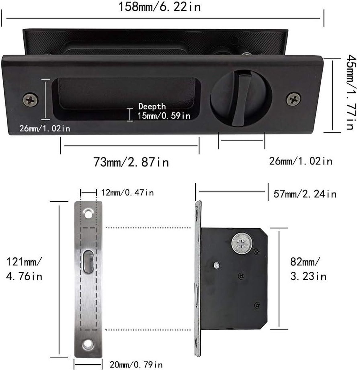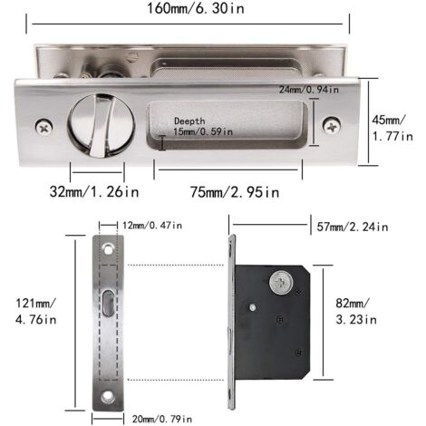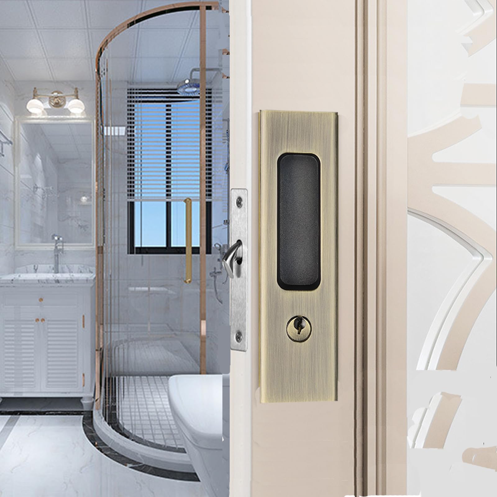Interieure LWZH Verrou De Porte De Poche En Bronze De 16 Cm, Loquet De Poignée Encastrée Invisible Avec Clés, Serrure à Mortaise De Porte Coulissante, Double Serrure De Porte De Grange Serrure