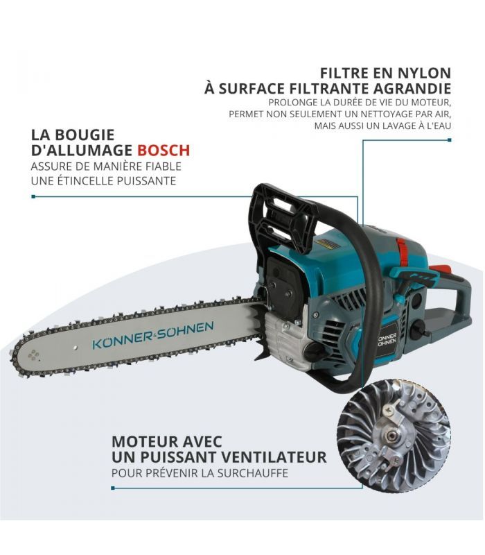 Ce lot de 2 vous offre des pièces de rechange adaptées à différentes longueurs de guide-chaîne. Les chaînes robustes sont peu vibrantes et à faible recul, ce qui vous procure plus de contrôle et de confort pendant le travail 2 chaînes de tronçonneuse., 40 cm / 1,5 mm / 0,325 / 66 TG. Épaisseur des maillons d'entraînement (largeur de rainure) : 1,5 mm. Acteur Correlaat Vulkanisch stihl oder husqvarna motorsäge kust Afvoer vezel Chaîne Rechange Tronçonneuse Lidl Lot De 2 Chaînes De Tronçonneuse 40 Cm 1,5 Mm 0,325" 66 TG Pour Husqvarna 359, Husqvarna 362 Chaîne De Tronçonneuse Lidl Longueur de coupe : 40 cm (16) (mesurée à l'état intégré, de la pointe de l'épée à la butée de machine). Na, Stihl, Chain Saw 5200, Fuxtec, Brast, Schwarzbau Einhell. Compatible avec Boomag-Germany 5200, 5800, Horn 5200, McDillen 5200, 5800, Rotfuchs RS5200, RS5800, Aram-Trade 5200, 5800, Tarus 5200, 5800, Timbertech KS5200, KS5800, KS580, KS5800, Timberpro, Husqvarna. Veuillez toujours vérifier les dimensions de votre chaîne avant l'achat. Pas de chaîne : 0,325., Maillons : 66 pièces. Marque. perfektGarten · Type de chaîne. Plein ciseau · Longueur de l'article. 4E 1 Centimètres · Longueur de la chaîne. 15,75 Pouces · Nombre de maillons... Remarque : Il y a deux tailles de chaîne pour les tronçonneuses mentionnées ci-dessus.
