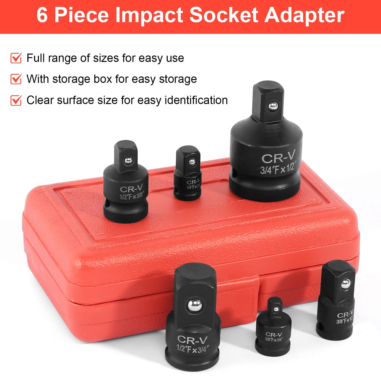 【Pratique et Gain de Temps】l'ensemble du corps est chromé et dispose d'un ressort à bille anti-off, d'un ressort à bille élastique pour une protection anti-off et d'un emplacement pour carte anti-off. Adaptateur 3 8 1 4 Adaptateur Douille, 6 Pièces Adaptateur Pour Impact Réducteu Adaptateur Pour Douille Cliquet 【Différents Modèles】Les modèles sont complets et les trois modèles peuvent être convertis les uns dans les autres. Ils te permettent de passer d'une taille de douille à une autre sans problème : 3/8 vers 1/4, 1/2 vers 3/8... En acier chrome-molybdène super résistant, ils... Cliquet 1/2 4pcs Adaptateur à Cliquet Jeu D'adaptateurs De Douilles 3/8 à 1/2,1/2 à 3/8, 1/4 à 3/8,3/8à 1/4 Réducteur De Douille Pour Douilles Et Embouts Adaptateur 3/8 1/2 Livré chez vous au meilleur prix : Adaptateur Douille, 6 Pièces Adaptateur pour Impact Réducteur, Adaptateurs à Cliquet 3/4 vers 1/2,3/8 vers 1/2,3/8 vers 1/4 p Cliquet Douille SOURCING MAP 1/4″ Femelle à 1/2″ Mâle Acier Cr-V... 【Large Gamme D'applications】le kit d'adaptateurs est souvent utilisé dans la réparation automobile, les travaux de bricolage, l'entretien et la réparation de maisons, etc. Maximisez l'aide à la finition des travaux et gagnez ainsi considérablement du temps d'entretien.