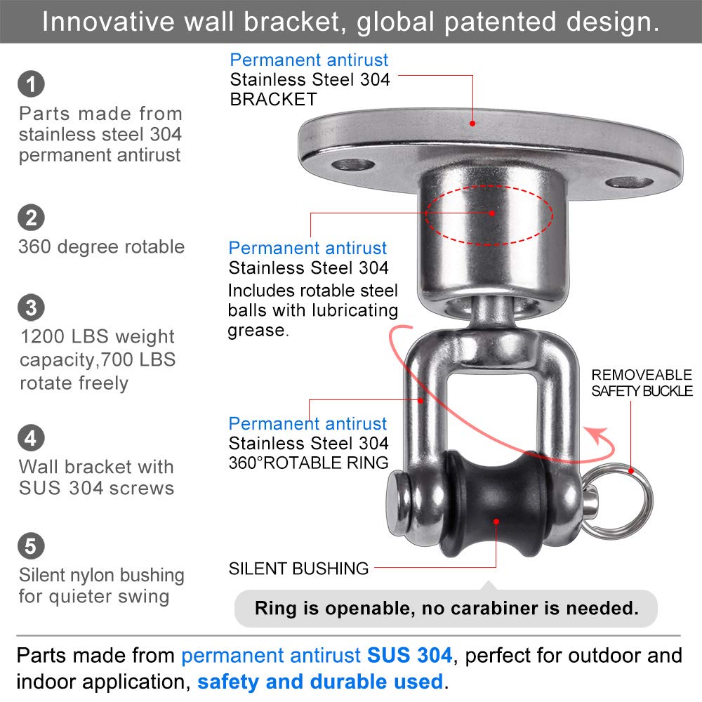 Pour plus de sécurité, veuillez toujours vérifier que toutes les pièces assemblées ou soudées sont bien assemblées pour l'utilisation. Largement utilisé pour le plafond mural et la surface plane. ① Cela nécessite que vous compreniez d'abord comment utiliser les vis à bois. ① Cela nécessite que vous compreniez d'abord comment utiliser le boulon d'expansion ② Percez deux trous dans le plafond, puis utilisez des boulons d'extension pour fixer le crochet de suspension au plafond. S'installe sur du béton (à utiliser avec entrer dans le mur pour étendre les particules colloïdales). Attention : Son poids maximum est de 408,2 kg. Durable et robuste, jusqu'à 408 kg. BeneLabel Kit de chaîne de chaise suspendue en acier S'installe sur le bois. Contenu de l'emballage : 1 porte-balançoire. Kit De Fixation Pour Hamac 425>BeneLabel Kit De Suspension Pour Chaise Hamac - Suspension Robuste Support Hamac ② Pré-percez deux trous dans la poutre en bois, il est recommandé d'utiliser un foret de moins de 0,5 cm. retournez votre commande pour un remboursement complet de 30 jours. Se connecte rapidement au hamac ou à la chaise que vous avez besoin de suspendre. ③ Passez la vis à travers le trou dans la base du crochet de balançoire, et utilisez une clé ou une perceuse électrique pour serrer la vis. Si vous n'êtes pas satisfait de quelque raison que ce soit, remboursement complet sous 30 jours. Parfait pour le divertissement en intérieur et en extérieur. Cet ensemble de boulons de suspension est conçu avec des roulements supplémentaires en position de rotation qui rendent l'oscillation plus fluide et plus silencieuse lors de l'utilisation. Chaîne de 100 cm / 1 m 1 mousqueton., 2 vis à bois., 2 boulons d'expansion. 【Haute qualité】: l'ensemble de cintres est entièrement fabriqué en acier inoxydable. VGEBY Kit de suspension pour chaise hamac Kit De Suspension Au Plafond... La longueur de la chaîne à crochet à 360° est de 119,4 cm/1,2 m est ultra flexible pour vous permettre de régler la hauteur de suspension. Contenu Assurez-vous que la surface est assez solide pour supporter le poids et les forces impliquées que vous montez. Parfait pour les balançoires de hamac, les balançoires de porche, les balançoires, les sacs de frappe ou pour accrocher tout autre objet lourd d'un support suspendu.