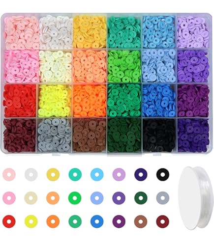 Cadeau idéal : les perles en argile polymère sont un excellent cadeau pour votre meilleure amie, sœur, fille et tout amateur de bricolage pour Noël, anniversaire, fête des enfants, Thanksgiving, fête des mères. Cheriswelry Perles Heishi rondes plates en argile polymère de 6 mm, faites à la main, pour la fabrication de bijoux, bracelets d'amitié, loisirs créatifs... Il est également adapté pour la fabrication de bracelets, colliers, bijoux, vêtements et autres travaux manuels. Idées de bricolage : vous pouvez ajouter ces perles Heishi à vos perles ou breloques préférées comme entretoises, ou les enfiler sur un fil entier pour créer des bijoux en perles, leurs couleurs vives rendront vos créations plus attrayantes. Bracelet Heishi Cheriswelry Lot De 1175 Perles Rondes Plates En Argile Atelier A Bracelet Heishi Cheriswelry Lot de 4 560 à 4 800 perles d'espacement en Contenu de l'emballage : vous recevrez des perles en argile polymère d'environ 6 mm de diamètre, 1 mm d'épaisseur, trou : 2 mm ; environ 1175 pièces/50 g. Matériau : fabriqué en argile polymère, il est doux, léger et confortable à porter, avec une longue durée d'utilisation.