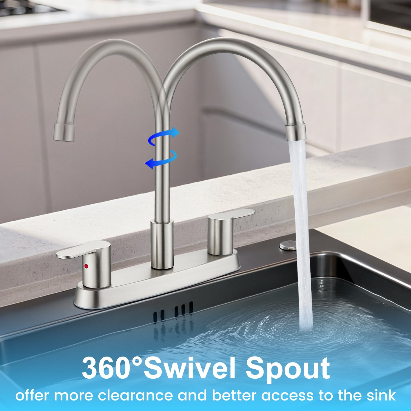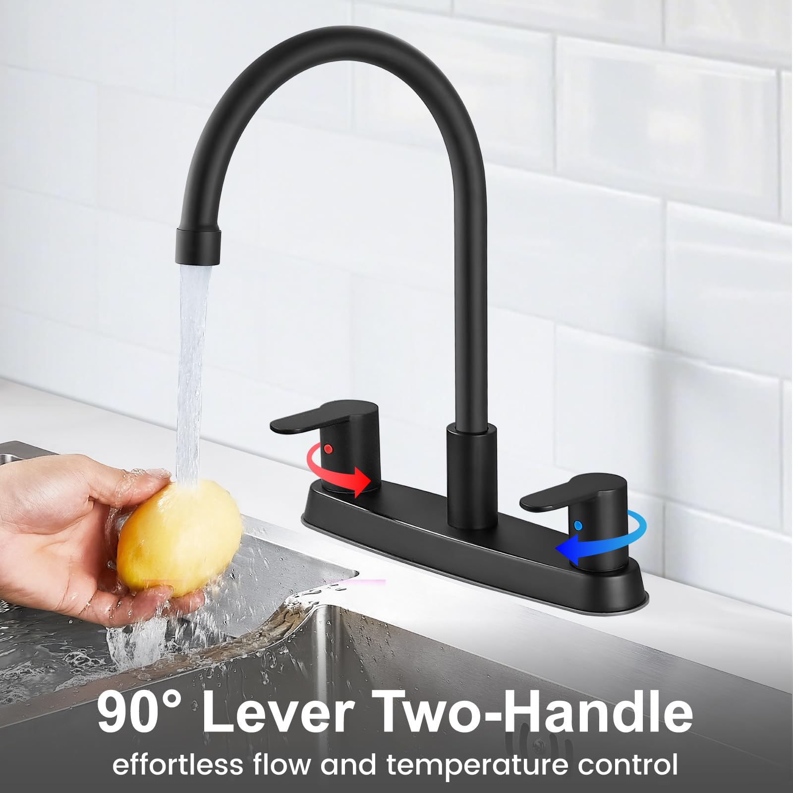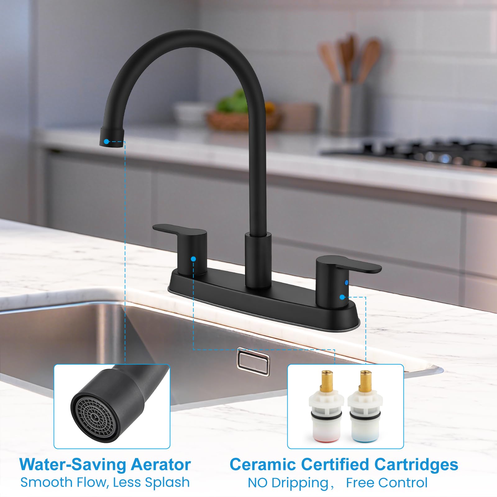 Parfait pour un usage quotidien Aucun Drip] Ce robinet d'évier avec un bec haut, un barboteur de qualité supérieure et des vannes en céramique de qualité supérieure sont relevés plusieurs... Contenu : robinet d'évier de cuisine, tuyaux d'eau de 81,3 cm, instructions d'installation (français non garanti) Bec rotatif à 360° à arc élevé : le robinet de cuisine pour camping-car dispose d'un bec pivotant à arc haut avec un bec de 18,5 cm pour garantir une plus grande surface de nettoyage, nettoie facilement chaque coin et recoin de l'évier Cinwiny Robinet De Cuisine Central De 20,3 Cm Pour évier De Cuisine à 3 Trous à Double Poignée, Bec Rotatif à 360 Degrés Avec Lignes D'alimentation, Noir Mat, Sans Pulvérisateur Latéral Robinet d'évier Peerless, à double poignée, nickel brossé Ce robinet de cuisine noir mat pour camping-car est conçu pour un évier à 2 ou 3 trous avec une distance de trou de 20,3 cm. La surface générale est noire mate, adaptée à tout style de décoration