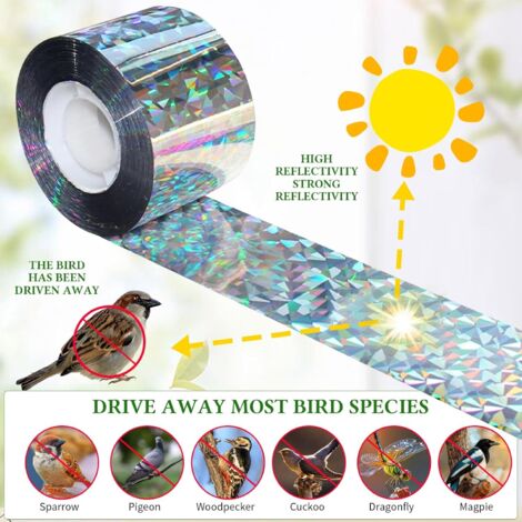 garantie de qualité: Ce ruban adhésif est fabriqué à partir d'un matériau PP robuste, non toxique, résistant au vent et résistant à toutes sortes de conditions météorologiques. Étape d'installation: Coupez le ruban à la longueur souhaitée, attachez - le à une branche ou à un avant - toit, tournez - le de 180 ° tous les deux mètres pour une réflexion maximale. Il est utilisé uniquement pour dissuader les oiseaux, sans nuire à eux ou à d'autres animaux. OFFO Ruban Repulsif Oiseaux 100M x 2,4CM, Réfléchissant Avec une longueur totale de 80 mètres et une largeur de 2,4 cm, ce ruban spécialement développé est non seulement un remède efficace contre les dommages causés aux oiseaux, mais aussi une belle décoration pour votre maison et votre jardin. De plus, il crée du bruit dans le vent et repousse les oiseaux – un double effet pour une protection maximale!, 2., ✅ [matériaux durables de haute qualité] Le ruban anti - oiseaux est fait de film de polyester de haute qualité, sûr, respectueux de l'environnement et non toxique. Dimension]: longueur: 360 pieds (environ 110 m), largeur: environ 1,9 pouce (4,8 cm); Quantité par paquet: 1 x ruban effrayant pour les oiseaux.[Haute Qualité Et Durabilité]les bandes réfléchissantes sont fabriquées dans un matériau de qualité et durable, le ruban anti-oiseaux double face refléterait et brillerait, qui peut durer longtemps et est difficile à décolorer et à... Que ce soit sur un balcon, une terrasse ou comme décoration de fête, il s'intègre parfaitement dans n'importe quel environnement et offre des fonctionnalités supplémentaires., 5., ✅ [respectueux de l'environnement et des animaux] Les bandes anti - oiseaux sont entièrement recyclables et ne causent aucun dommage aux oiseaux ou à l'environnement. Résistant à la déchirure, aux intempéries et aux UV, il garantit une longue durée de vie et des performances fiables, même dans des conditions extrêmes., 3., ✅ [facile à installer et à personnaliser] Avec une longueur totale de 80 mètres et une largeur de 2,4 cm, vous pouvez facilement couper le ruban à la longueur souhaitée et le fixer à une branche, une clôture, un toit ou un balcon. Le motif spécial en diamant reflète la lumière du soleil éblouissante dans toutes les directions et stimule les yeux des oiseaux loin. Un moyen écologique et respectueux des animaux de protéger vos plantes. Repulsif oiseaux : la sélection produits Leroy Merlin de ce mardi au meilleur prix ! Retrouvez ci-après nos 488 offres, marques, références et promotions en stock prêtes à être livrées rapidement dans nos magasins les plus proches de chez vous Mipcase Lot De 2 Rubans Réfléchissants Anti-Oiseaux Double Face Pour Balcon Verger Jardin Ce répulsif d'oiseaux est idéal pour protéger les jardins, les vergers, les pelouses et les bateaux de toutes sortes d'oiseaux tels que les pigeons, les traversiers, les goélands, etc.