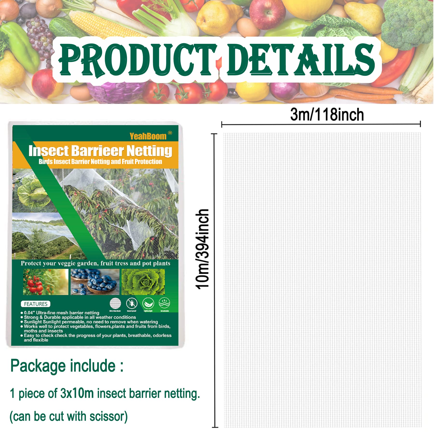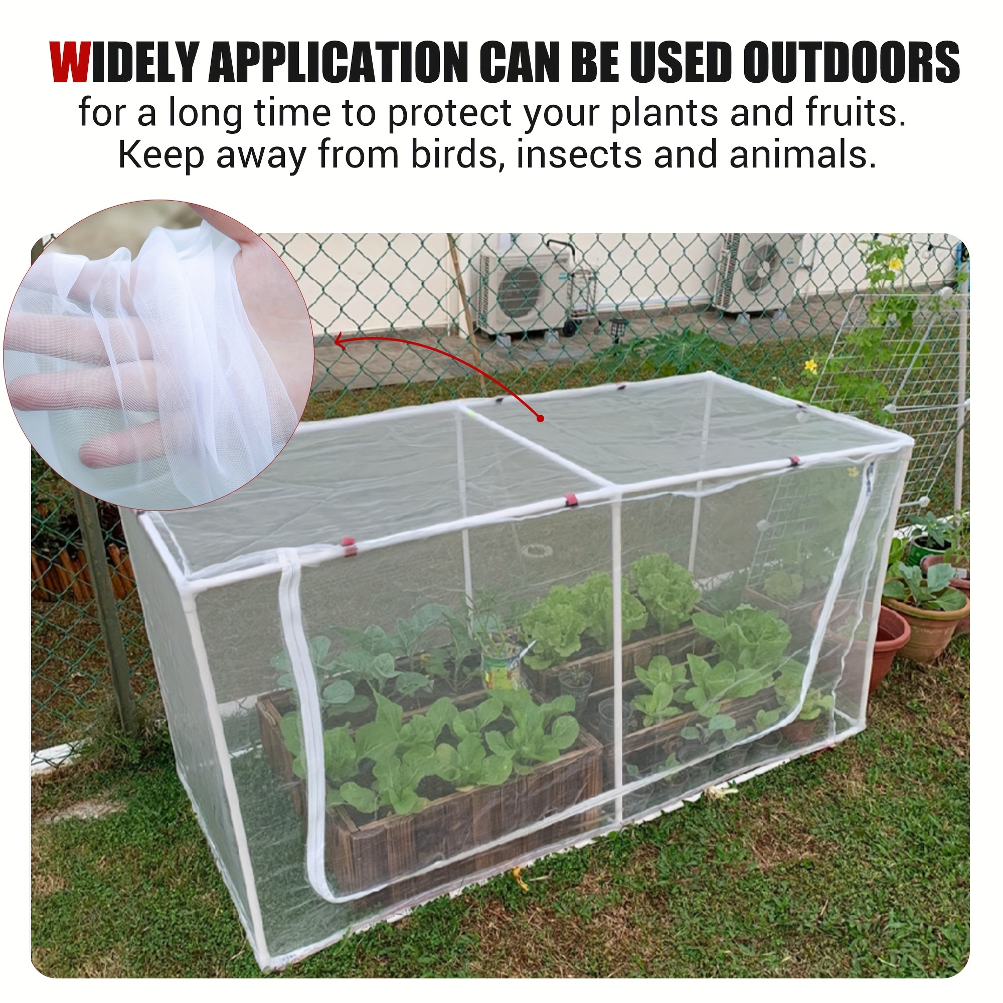 Vous pouvez également couper la taille que vous voulez. Filet De Jardin Gamm Vert Serre Tunnel Jardin Filet à Mailles Fines 200x100cm | Tunnel Cloche De Filet Insecte Il a des trous de maille ultra-fins, dont la taille est de 1 mm x 1 mm. Son filet est plus épais que les autres, mais a une maille ultra-fine, ce qui garantit qu'il ne se déforme pas même en cas de déchirure forte, et il peut résister à une exposition prolongée à la lumière du soleil. Filet Oiseaux Insectes Filet Anti-insectes 3x10 M - Protection Jardin Potager - Maille Fine 0.8mm Contre Oiseaux Et Parasites Protection Cultures Potager Large gamme d'utilisations : le filet de jardin est parfaitement utilisé pour les parterres surélevés, les couvertures de rangées, les serres, les cours, les vergers, les pépinières, etc. Ces kits de filet de jardin soutiendront et maintiendront le filet plus robuste, et fourniront une meilleure protection pour vos plantes. Facile à utiliser et à découper : la taille du filet de jardin est de 3,5 x 10 mètres. Assez long pour être coupé dans n'importe quelle taille ou forme, placé... Il est durable, épais et solide. Il est durable, ce qui offre un niveau de protection plus élevé pour vos plantes. Protégez également vos plantes du gel en hiver. Filet en maille ultra fine : la taille du filet de protection de jardin est de 3 x 10 m. Ou vous pouvez assortir les cerceaux de jardin, les piquets de sol et les clips de jardin que vous aviez ou aviez achetés avant de les utiliser ensemble. Le filet de jardin réduit les dommages causés à la plante par les rayons UV intenses, tout en laissant passer suffisamment de lumière du soleil, d'air et de pluie pour garantir la photosynthèse et suffisamment d'eau pour que les plantes fournissent un environnement de croissance sain pour les plantes. Taille parfaite : la taille du filet de protection de jardin est de 3 x 10 m. Il est assez large et long pour couvrir les plantes, les légumes, les fleurs, etc.