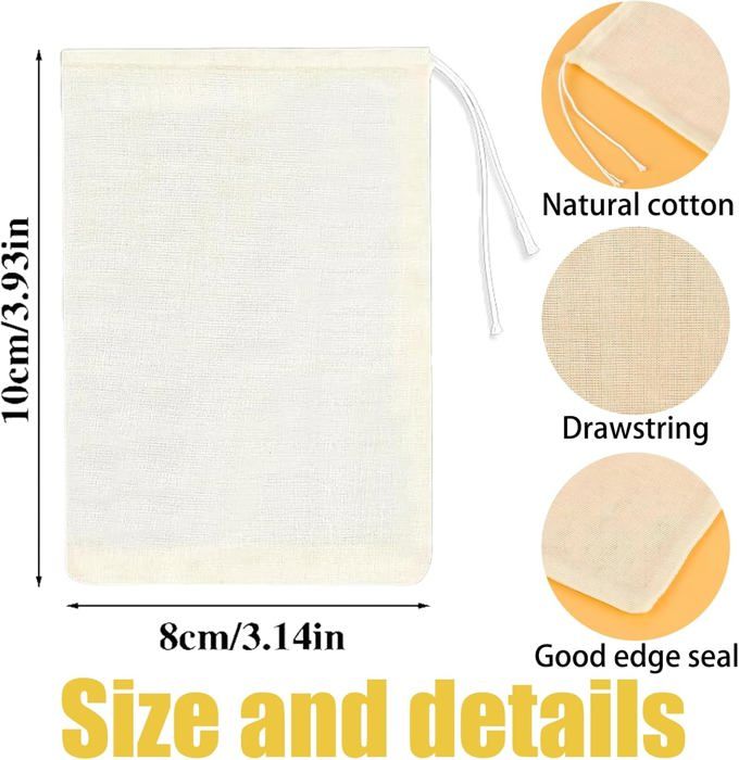 Sachet De The Reutilisable QUACOWW Lot De 100 Sachets En Mousseline De Coton Avec Cordon De Serrage Pour Sachets Sachet De The A Remplir Réutilisable Sachets de thé Évitez l'ingestion accidentelle de thé. Matériau de haute qualité : les sacs à cordon de serrage sont fabriqués en tissu non tissé de qualité alimentaire, qui ne contient pas de produits chimiques nocifs, fiables, ne craignent pas les températures élevées et basses, et vous pouvez les utiliser en toute confiance pour garantir le bonheur de vous et de votre famille et de vos amis. Lot de 100 sachets à thé vides en papier 50 sachets en Mousseline de Coton réutilisables pour la Cuisine, Le trempage de l'alcool... Un nettoyage et une réutilisation répétés ne changeront pas son état. Il peut également être utilisé pour mettre des feuilles de thé et du café insoluble, ce qui vous évite efficacement de boire accidentellement des restes alimentaires lorsque vous dégustez des boissons. Ajoutez des épices, qui peuvent être transportées comme un sachet pour vous faire sentir autour. Après avoir retiré le contenu du sac en tissu, nettoyez-le, séchez-le au soleil et continuez à le recycler. Design avec cordon de serrage : le cordon de serrage est adopté dans les sacs en mousseline, ce qui vous permet de fermer et de fermer plus facilement les sacs de brassage, et en même temps, il peut efficacement éviter que les articles à l'intérieur ne débordent et mieux isoler ou stocker les articles. Le Temps du thé vous propose de trouver le Thé, le Matcha ou la Tisane Bio qui saura vous convaincre et vous faire du bien. Sac à café Évitez l'ingestion accidentelle de marc de café.
