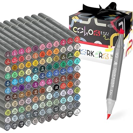 【80 Couleurs Sélectionnées】Avec 80 feutres alcool soigneusement sélectionnés, vous disposez d'un large éventail de teintes, allant des tons frais et délicats aux couleurs vives et intenses. 【Encre Alcool Haute Qualité Sèche Rapide】Nos feutres utilisent une encre à base d'alcool de haute qualité, sûre et non toxique, sans danger pour vous et l'environnement. D'un côté, une pointe fine de 0,5 à 2 mm est idéale pour tracer des lignes fines et détaillées, tandis que de l'autre, une pointe biseautée de 2 à 7 mm permet de colorier rapidement et de couvrir de grandes surfaces. Coffret Feutre 60 Couleurs Feutres à Alcool Double Pointe, Marqueurs Pinceau Et Ciseau Pour Coloriage Adulte, Dessin, Animation - Idéal Pour Artistes, Étudiants Feutres Acrylique Chaque couleur a été soigneusement ajustée pour garantir une intensité et une richesse de nuances exceptionnelles. 80 Couleurs Sélectionnées¿Avec 80 feutres alcool soigneusement sélectionnés, vous disposez d'un large éventail de teintes, allant des tons ais et délicats... 【Conception Double Tête Polyvalente】Chaque feutre ohuhu de notre collection est conçu avec une double extrémité. Ohuhu Feutre a Alcool 168 Colorés D'art, Pointe Double Feutres à Alcool... 【Usage sur Matériaux Variés】Ces feutres sont conçus pour être utilisés sur une variété de matériaux, tels que le plastique, le verre, le bois et les textiles. Que ce soit pour de la calligraphie, des jeux de coloriage ou la création d'affiches, cet outil polyvalent répondra à tous vos besoins créatifs, rendant votre travail plus efficace. Lot de 80 marqueurs à alcool à double pointe pinceau pour